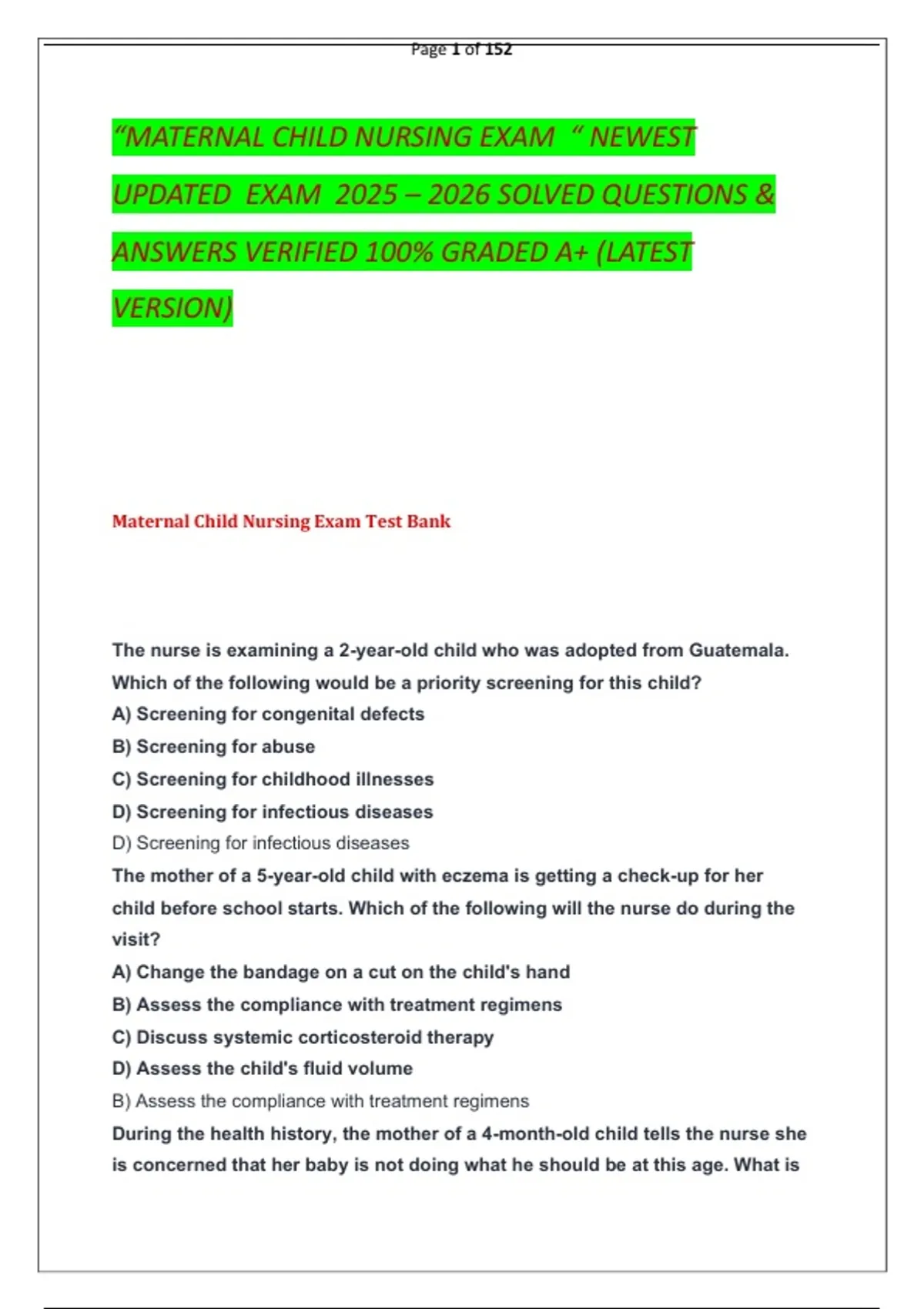 “MATERNAL CHILD NURSING EXAM “ NEWEST