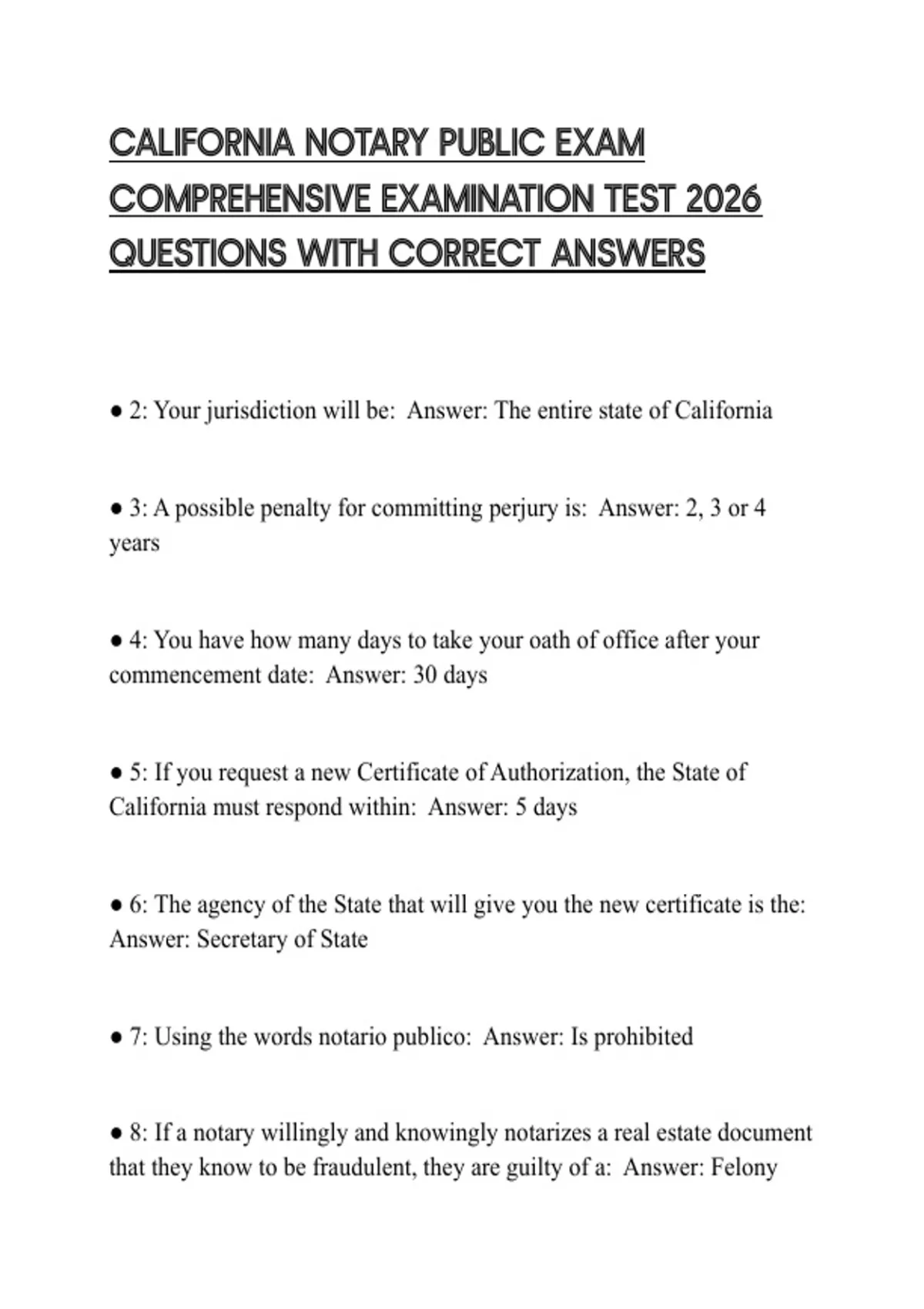 ● 3: A possible penalty for committing perjury is: Answer: 2, 3 or 4