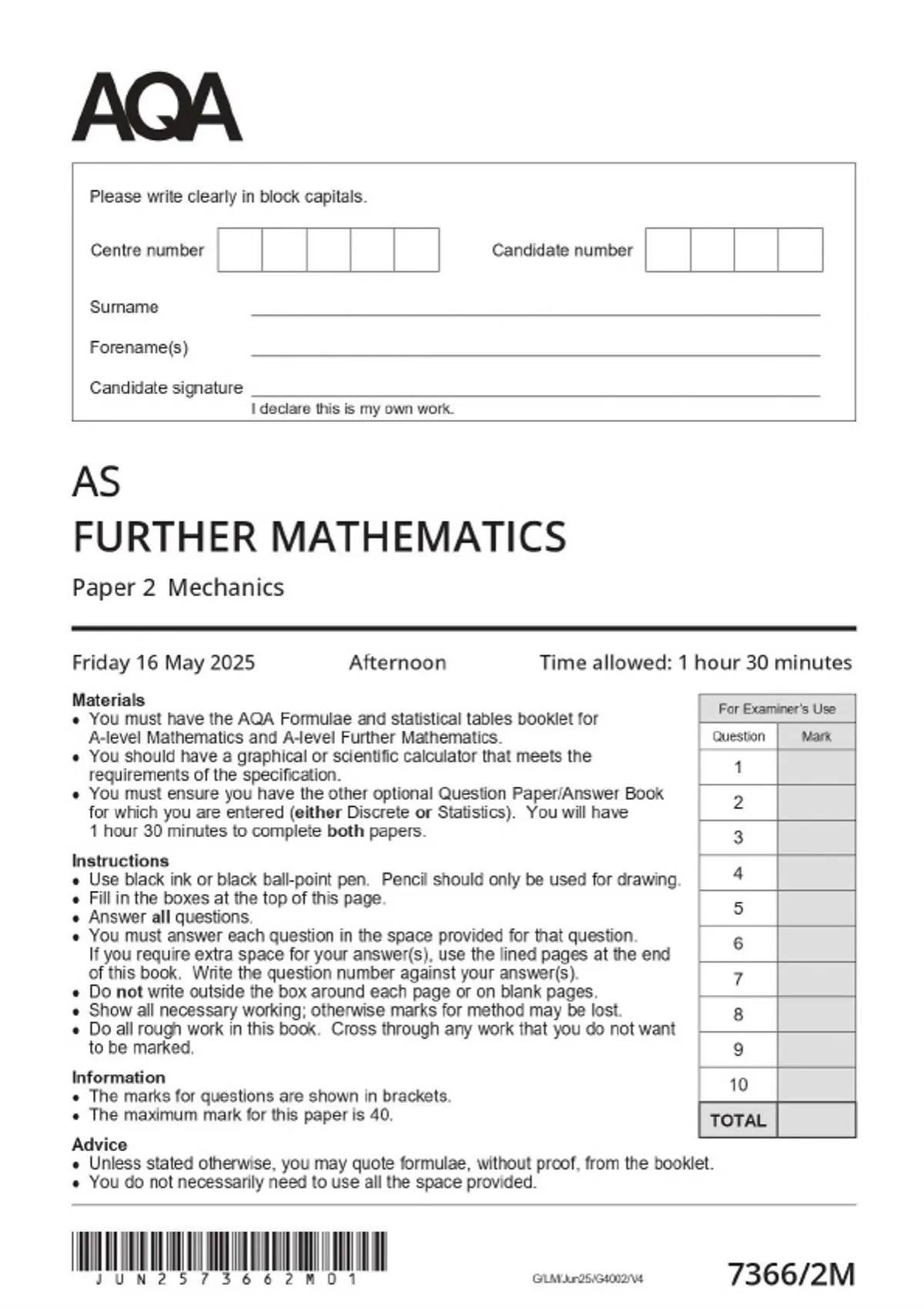 2025 aqa as further mathematics 73662m paper 2