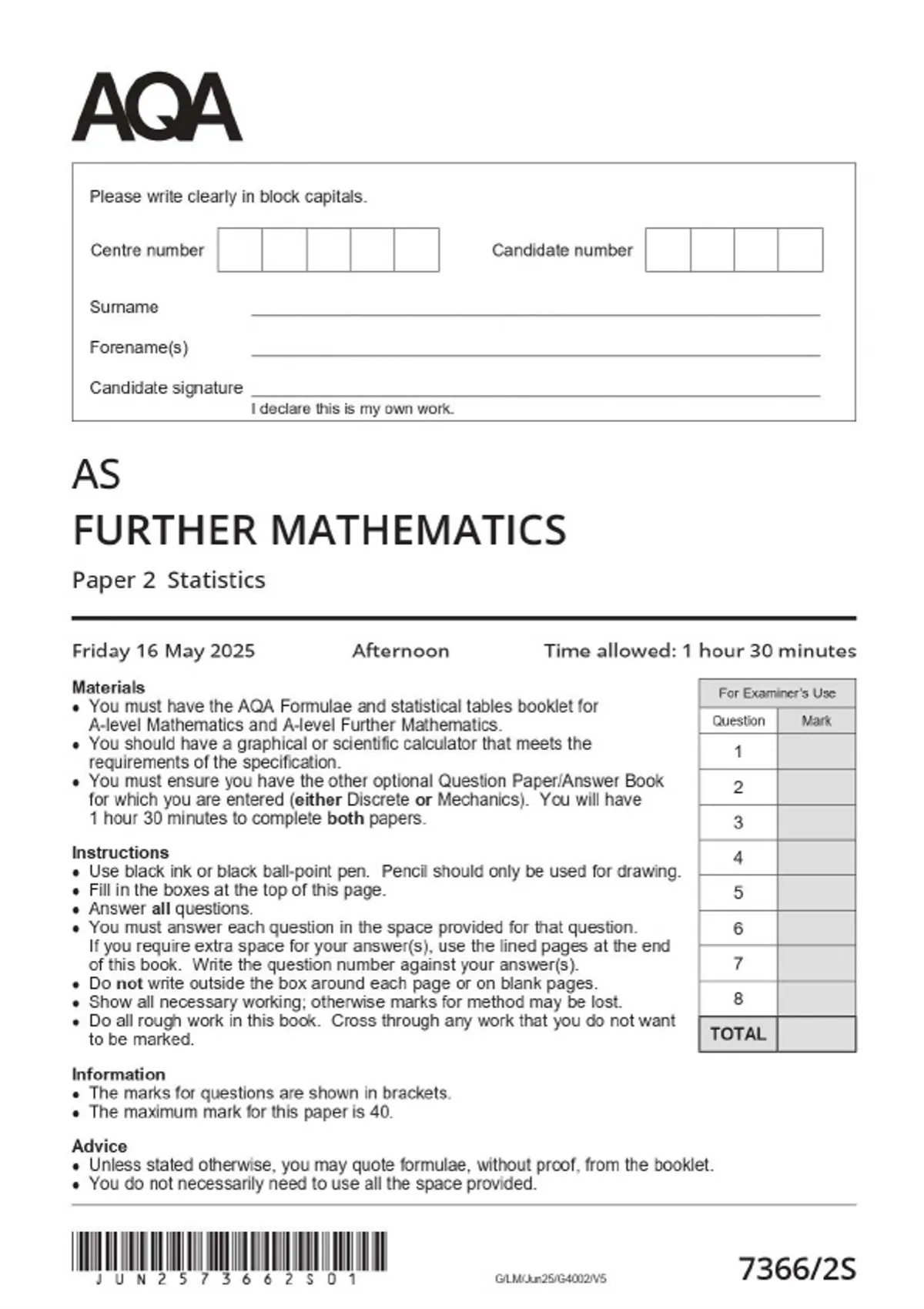 2025 aqa as further mathematics 73662s paper 2s