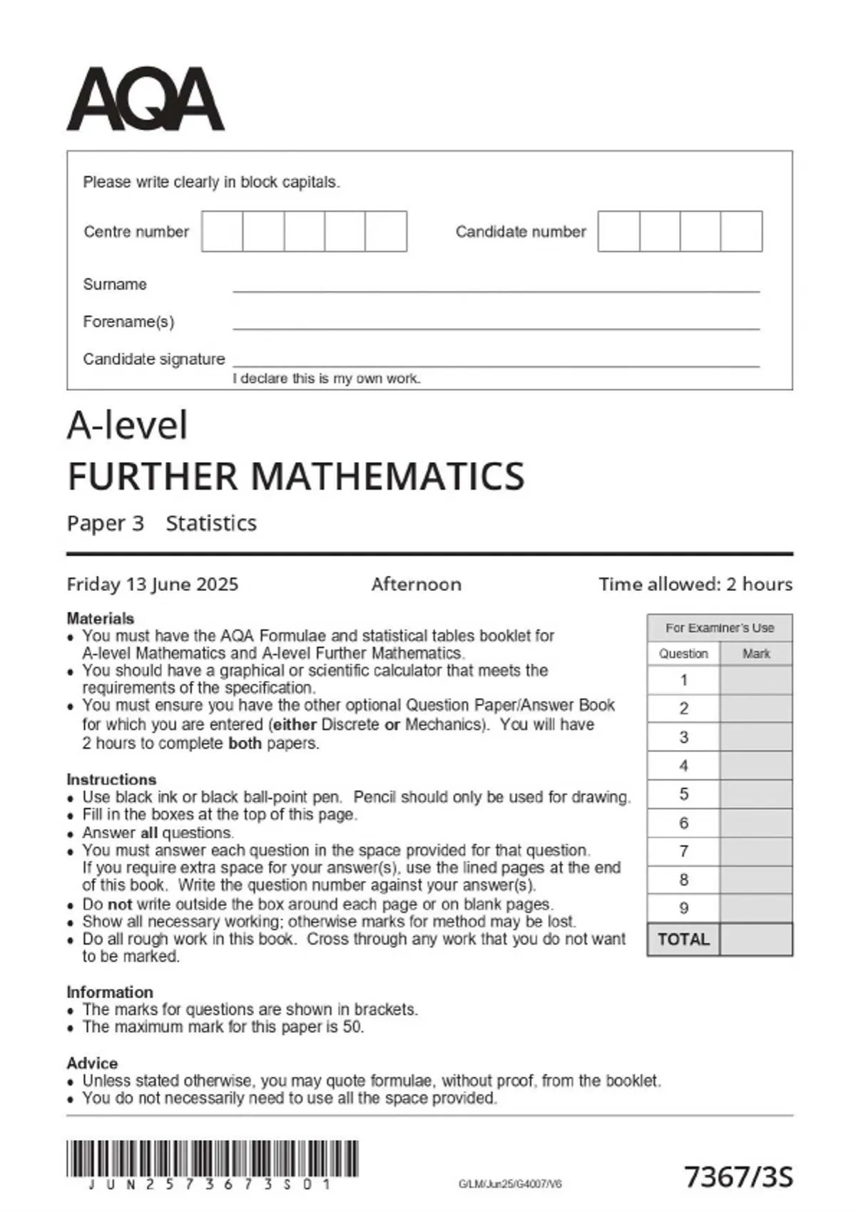 2025 aqa a level further mathematics 73673s