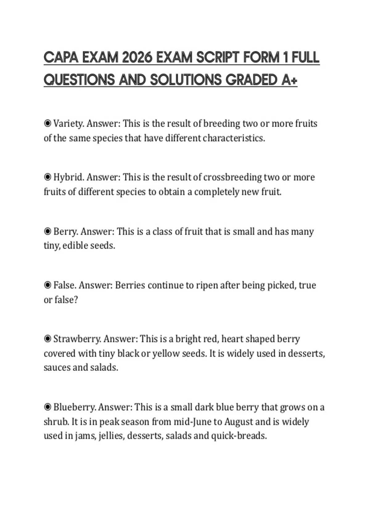 ◉ Variety. Answer: This is the result of breeding two or more fruits