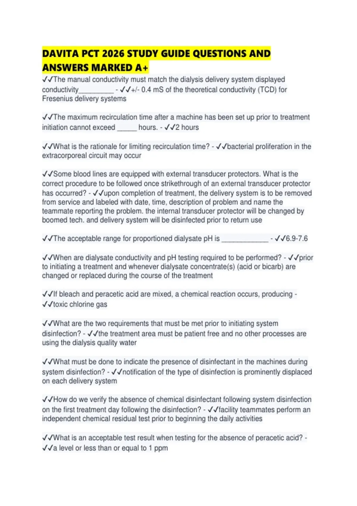 DAVITA PCT 2026 STUDY GUIDE QUESTIONS AND