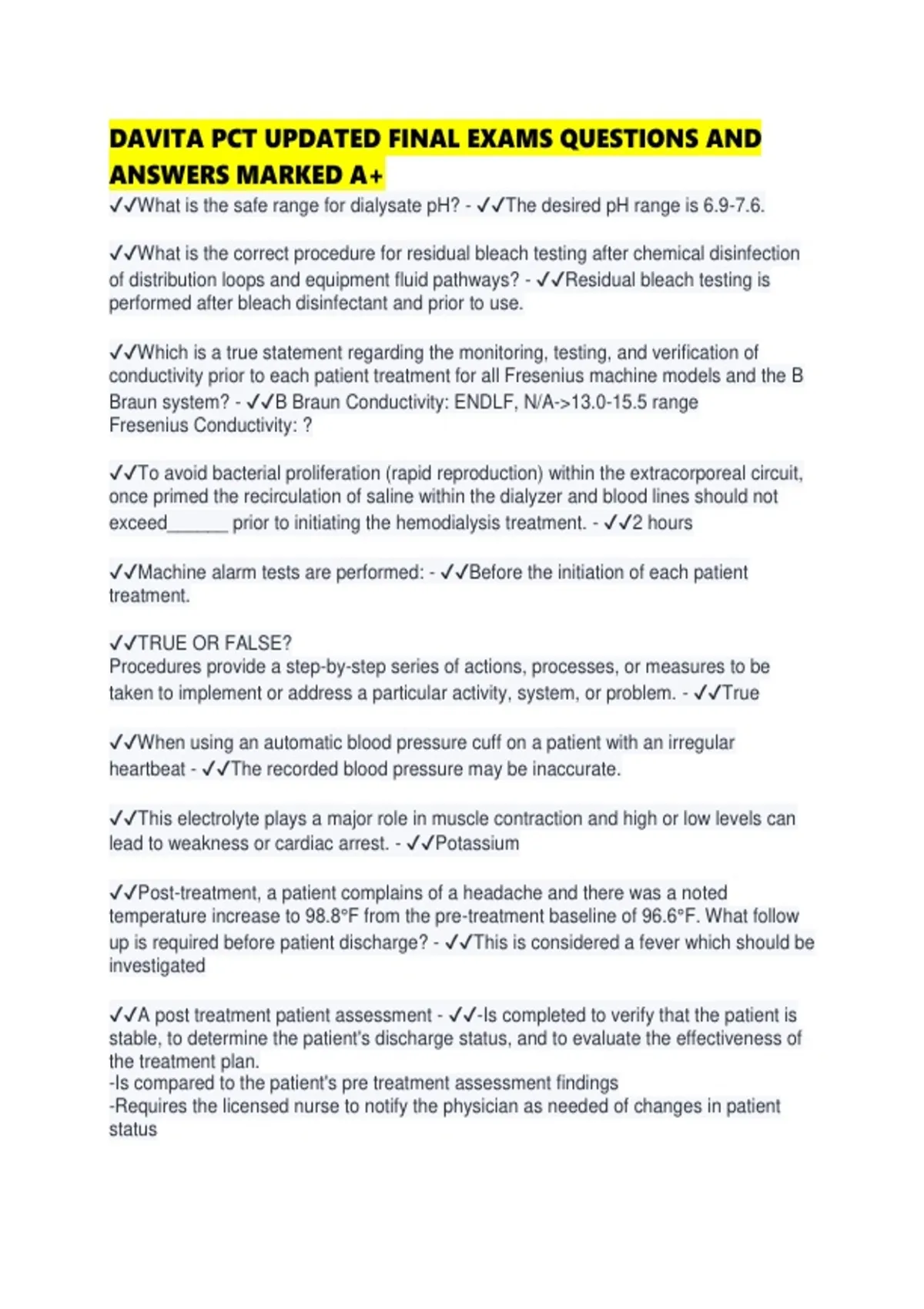 ✔✔A post treatment patient assessment - ✔✔-Is completed to verify that the patient is