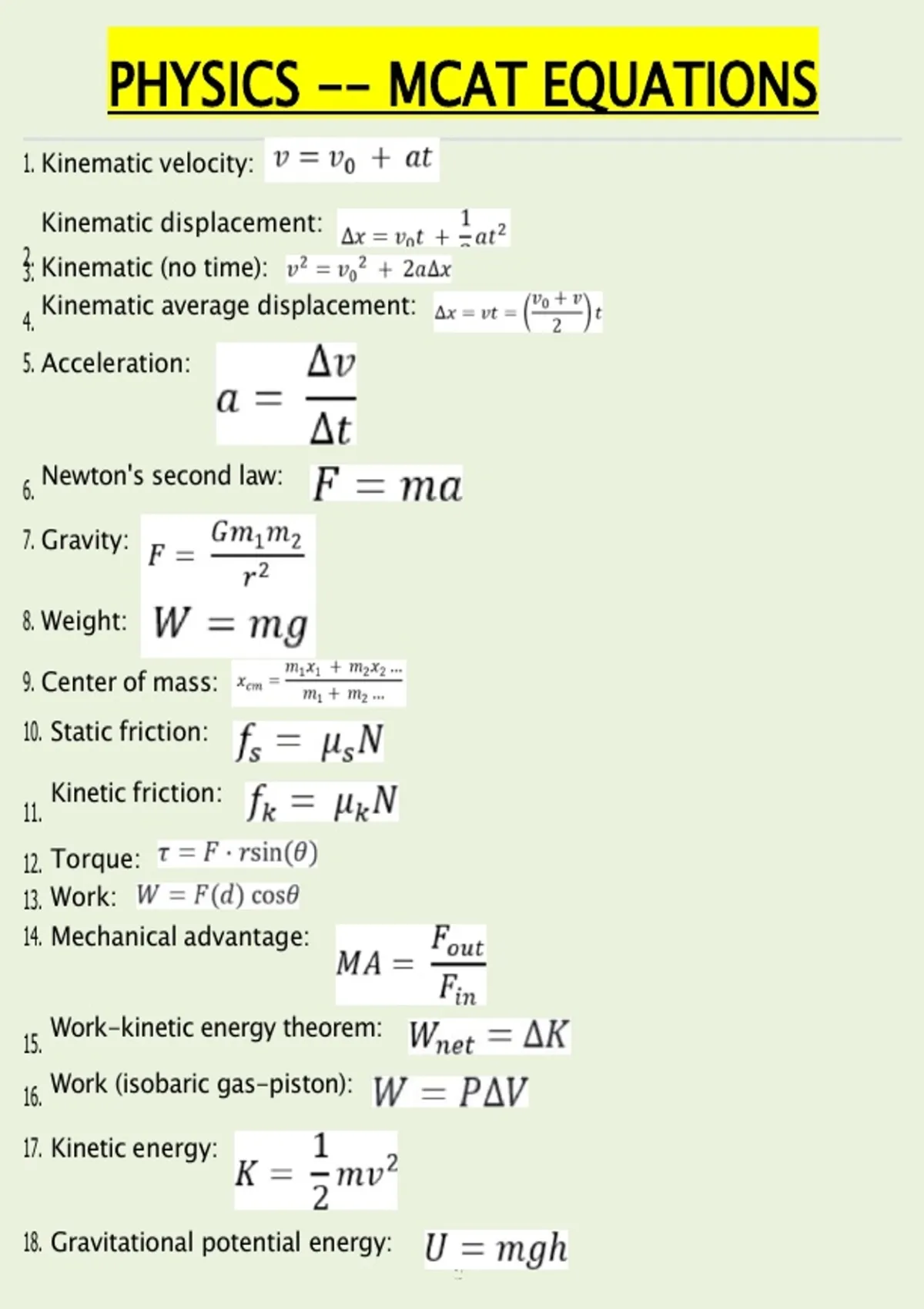 MCAT Physics Equations – Complete High-Yield Formula Sheet with Practice Applications