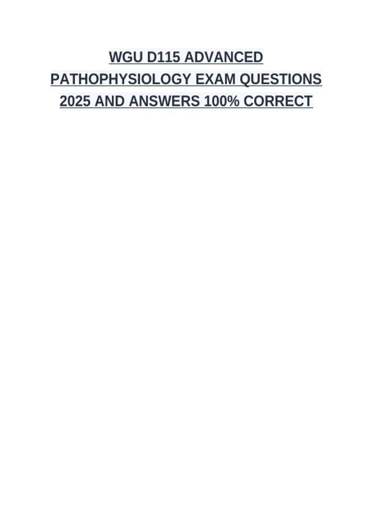 WGU D115 ADVANCED PATHOPHYSIOLOGY EXAM QUESTIONS 2025 AND ANSWERS 100% CORRECT