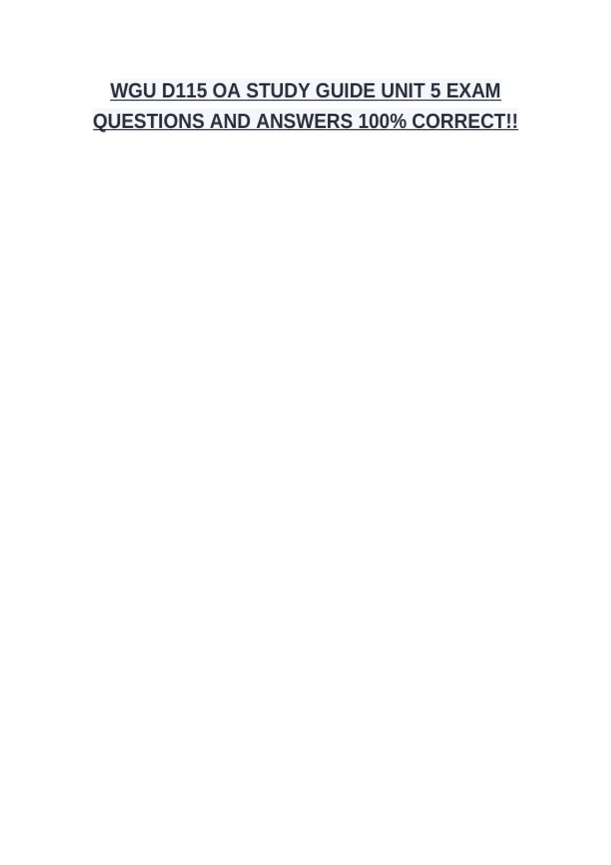WGU D115 OA STUDY GUIDE UNIT 5 EXAM