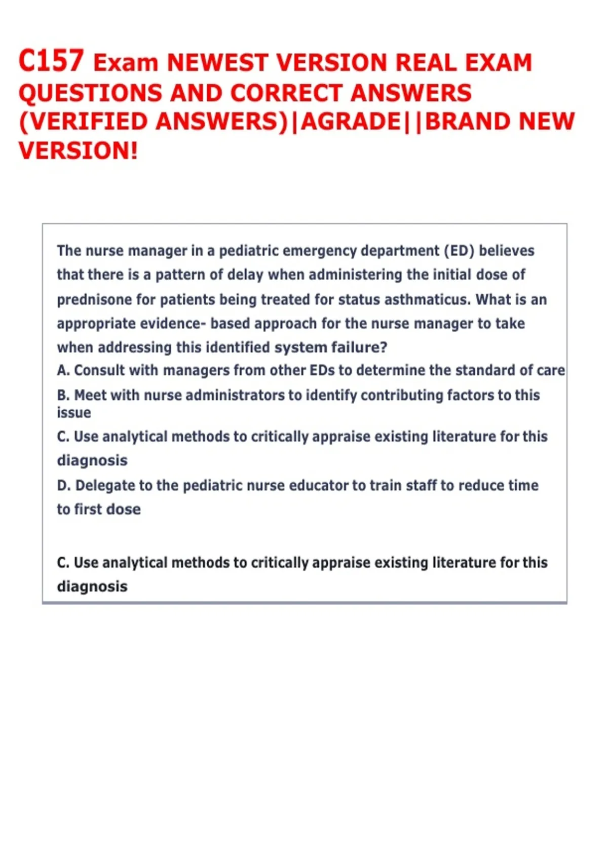 prednisone for patients being treated for status asthmaticus. What is an