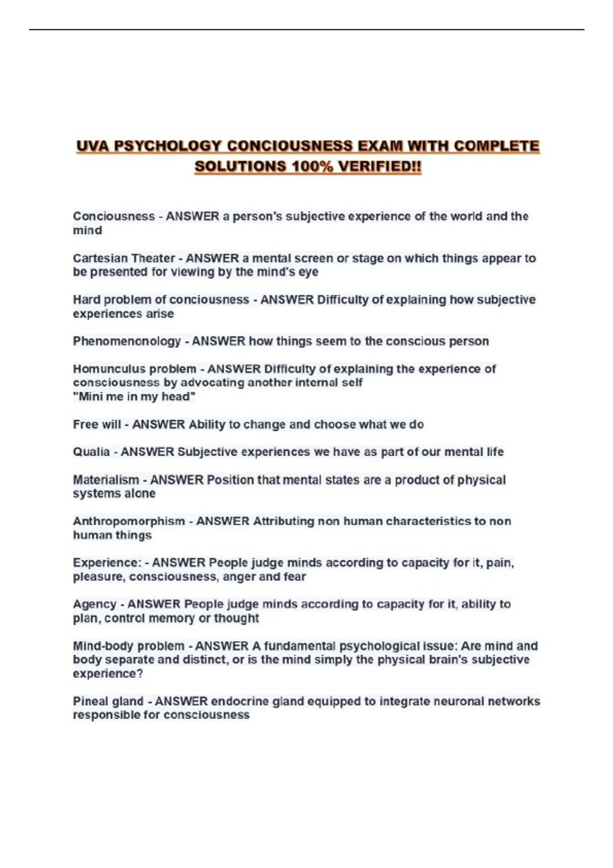 UVA PSYCHOLOGY CONCIOUSNESS EXAM WITH COMPLETE SOLUTIONS 100% VERIFIED!!...