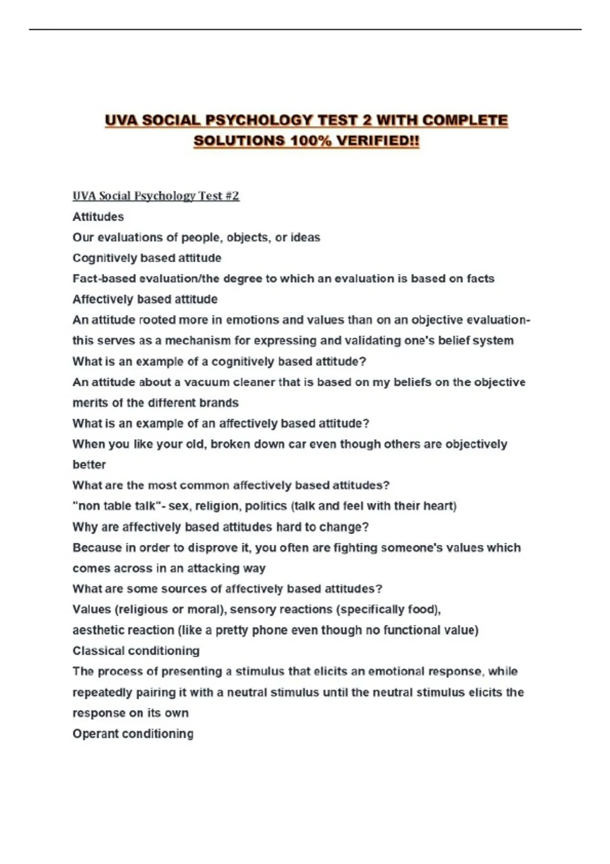 UVA SOCIAL PSYCHOLOGY TEST 2 WITH COMPLETE SOLUTIONS 100% VERIFIED!!...