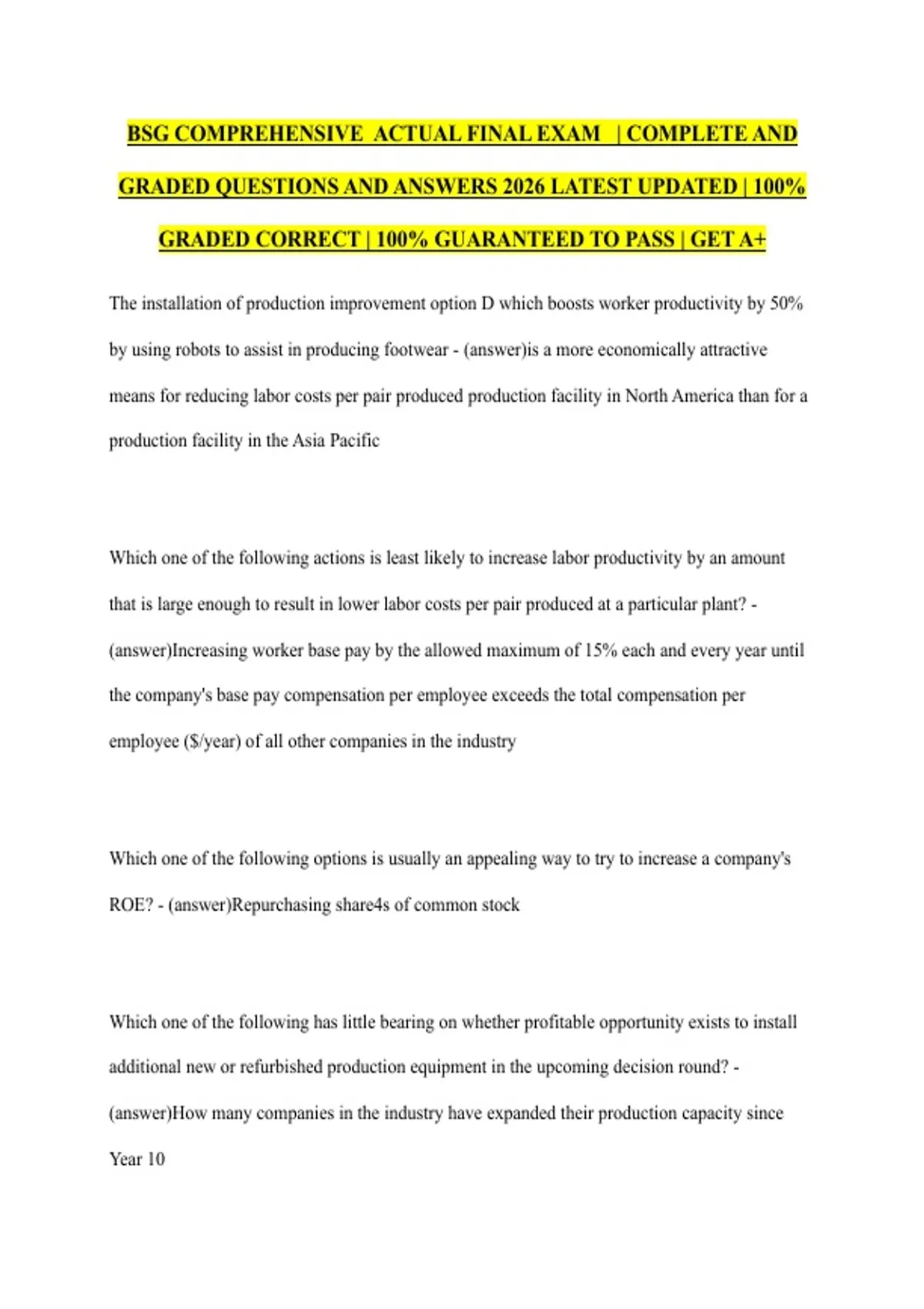 BSG COMPREHENSIVE ACTUAL FINAL EXAM | COMPLETE AND GRADED QUESTIONS AND ANSWERS 2026 LATEST UPDATED | 100% GRADED CORRECT | 100% GUARANTEED TO PASS | GET A+