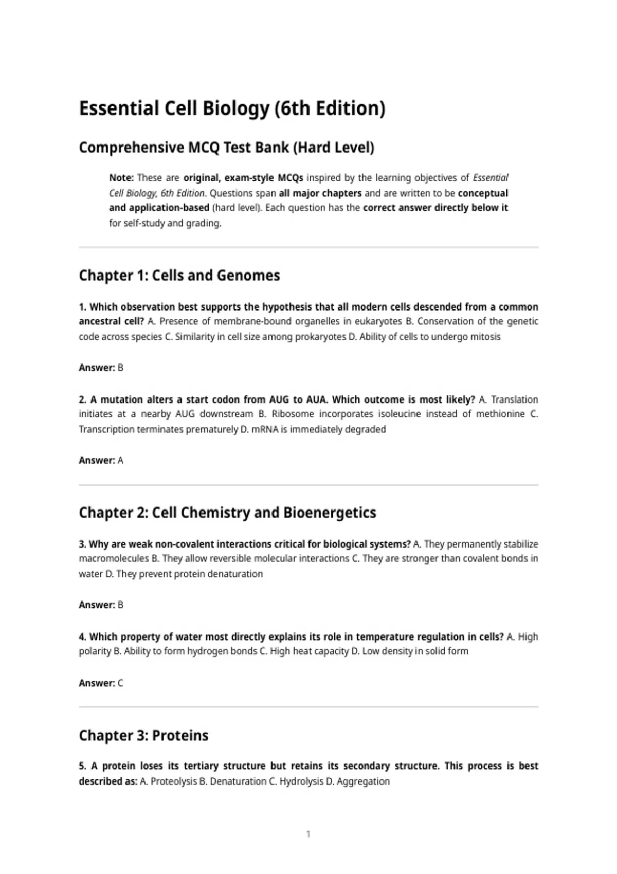 Cell Biology, 6th Edition. Questions span all major chapters and are written to be conceptual