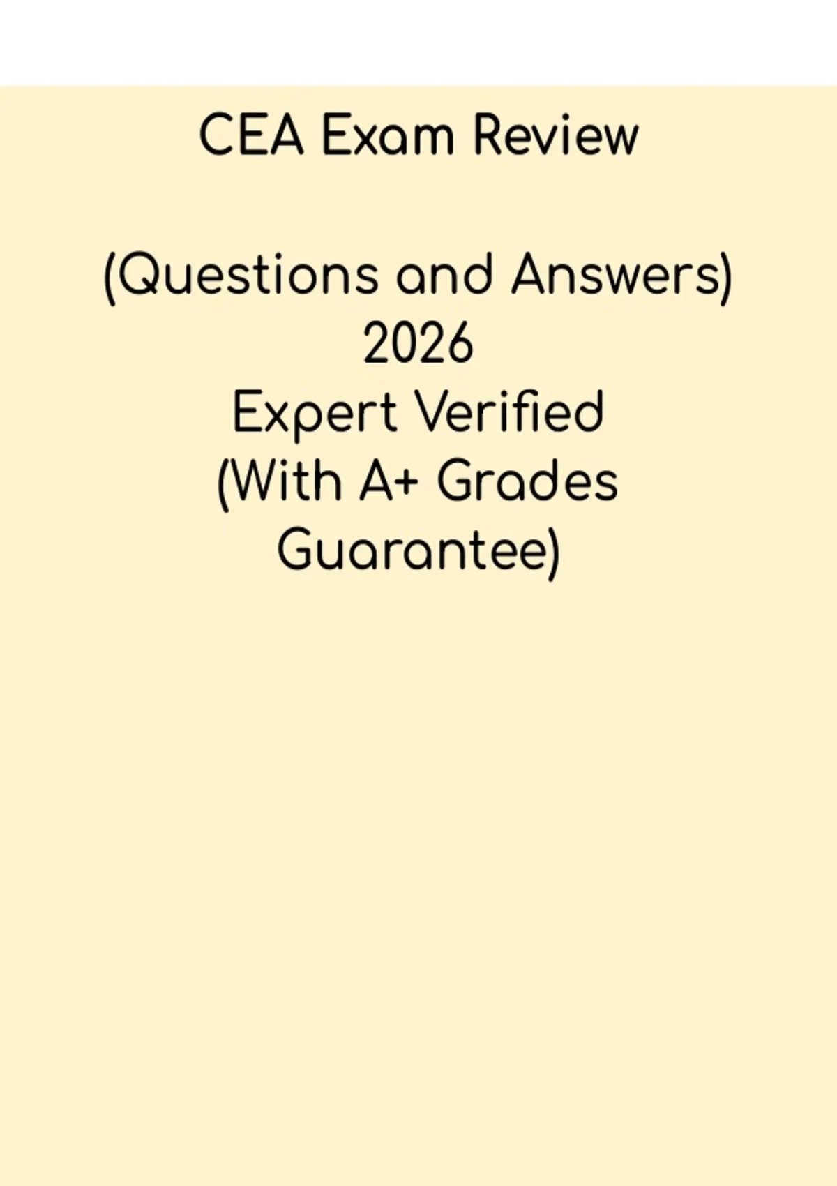 This CEA Exam Review PDF is a comprehensive study resource designed for candidates preparing for the Certified Engineering Assistant (CEA) exam. It covers essential engineering concepts, exam-style practice questions, and review material to help learners strengthen knowledge and build confidence. The guide is structured to support efficient studying and improve chances of passing the CEA certification exam.