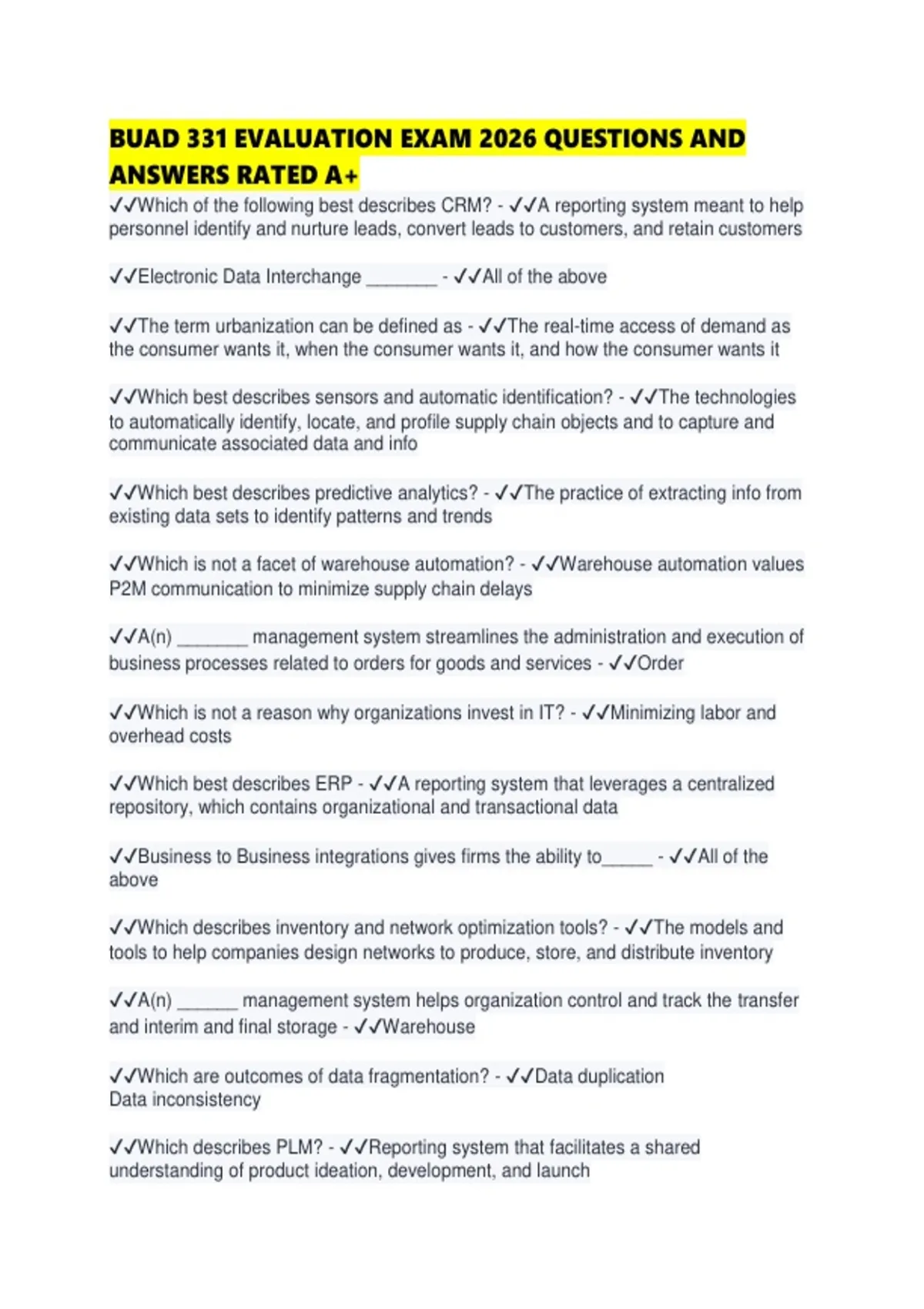 ✔✔Which best describes ERP - ✔✔A reporting system that leverages a centralized