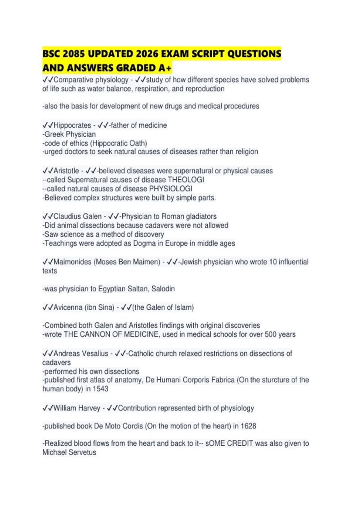 ✔✔Aristotle - ✔✔-believed diseases were supernatural or physical causes