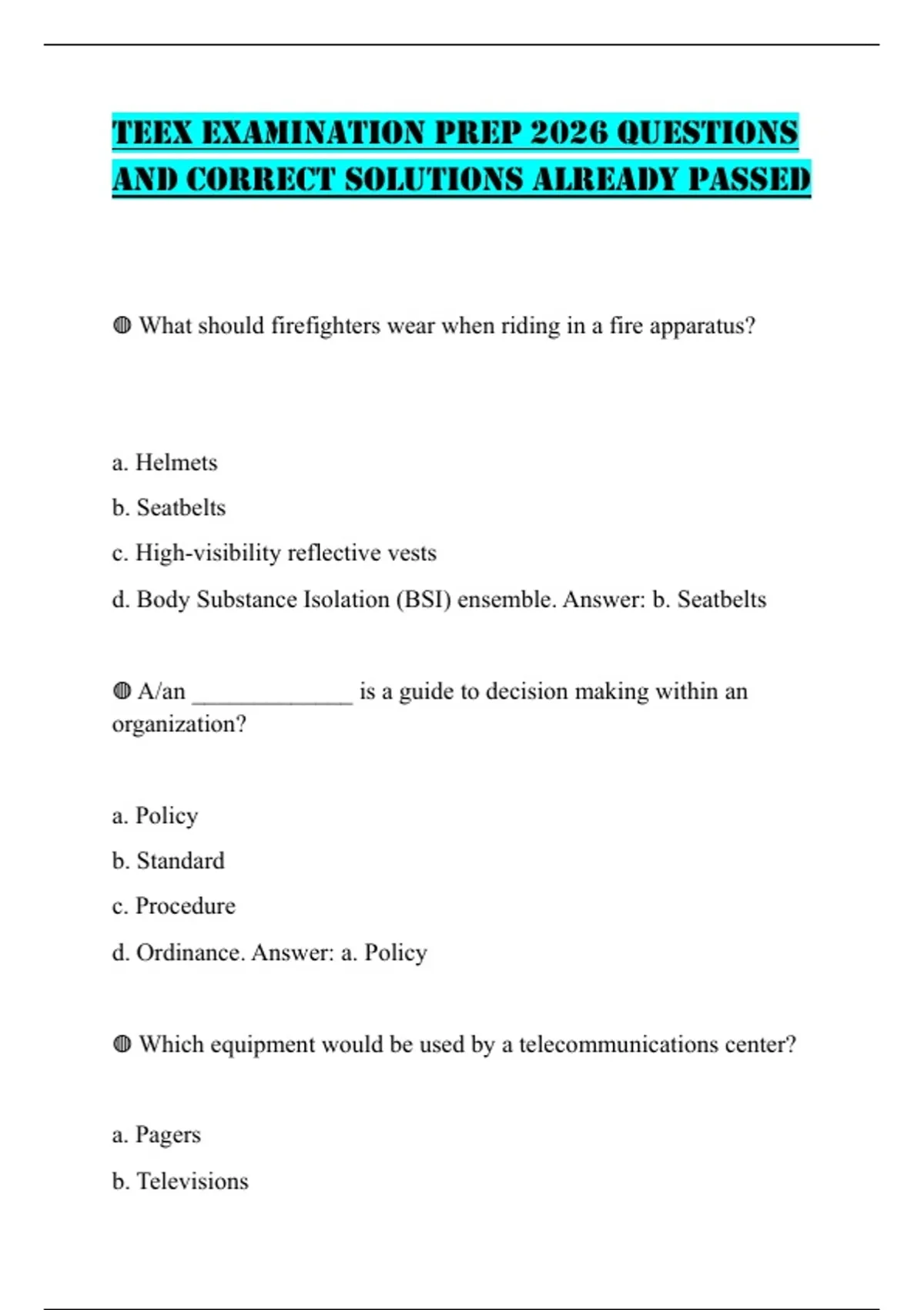 d. Body Substance Isolation (BSI) ensemble. Answer: b. Seatbelts