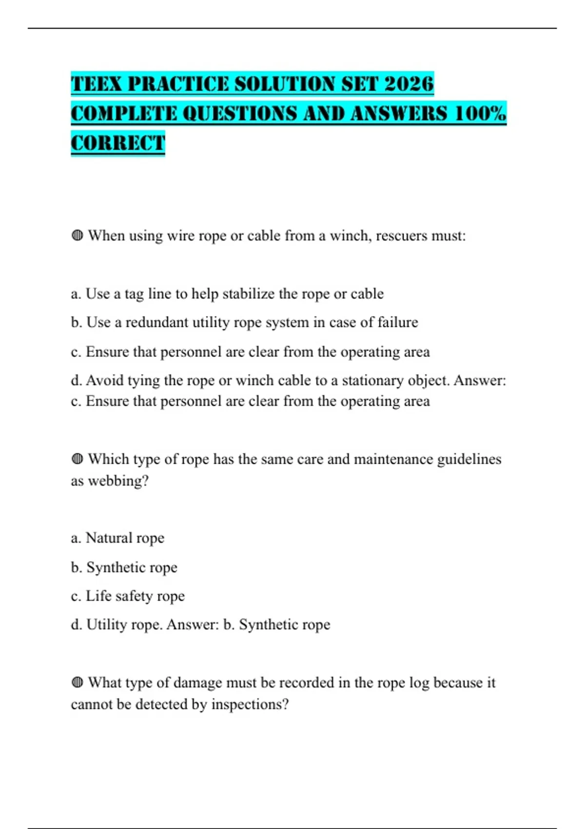 TEEX PRACTICE SOLUTION SET 2026