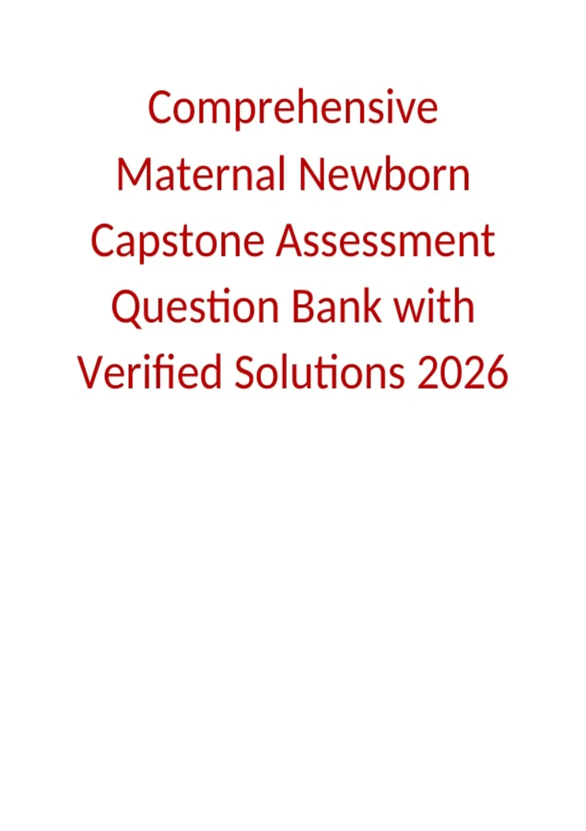 Comprehensive Maternal Newborn Capstone Assessment Question Bank with Verified Solutions