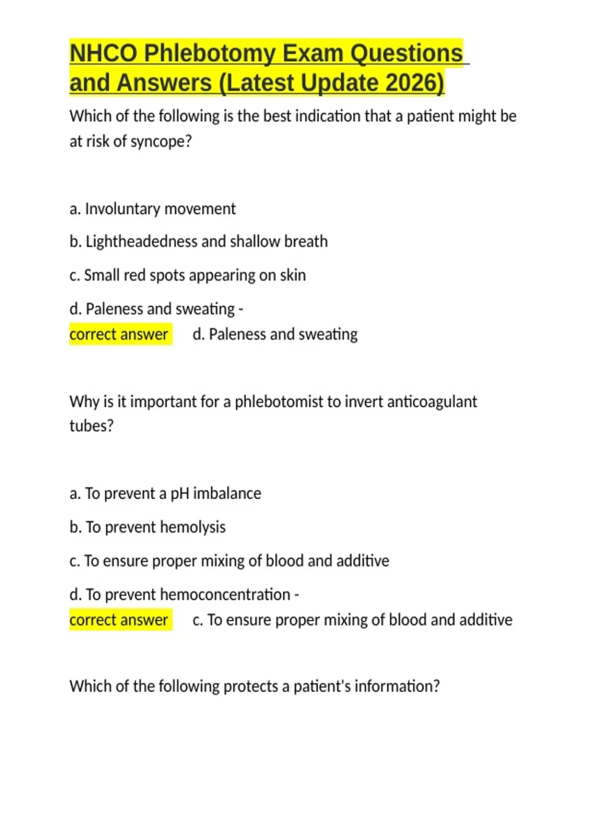 ,NHCO Phlebotomy Exam Questions
