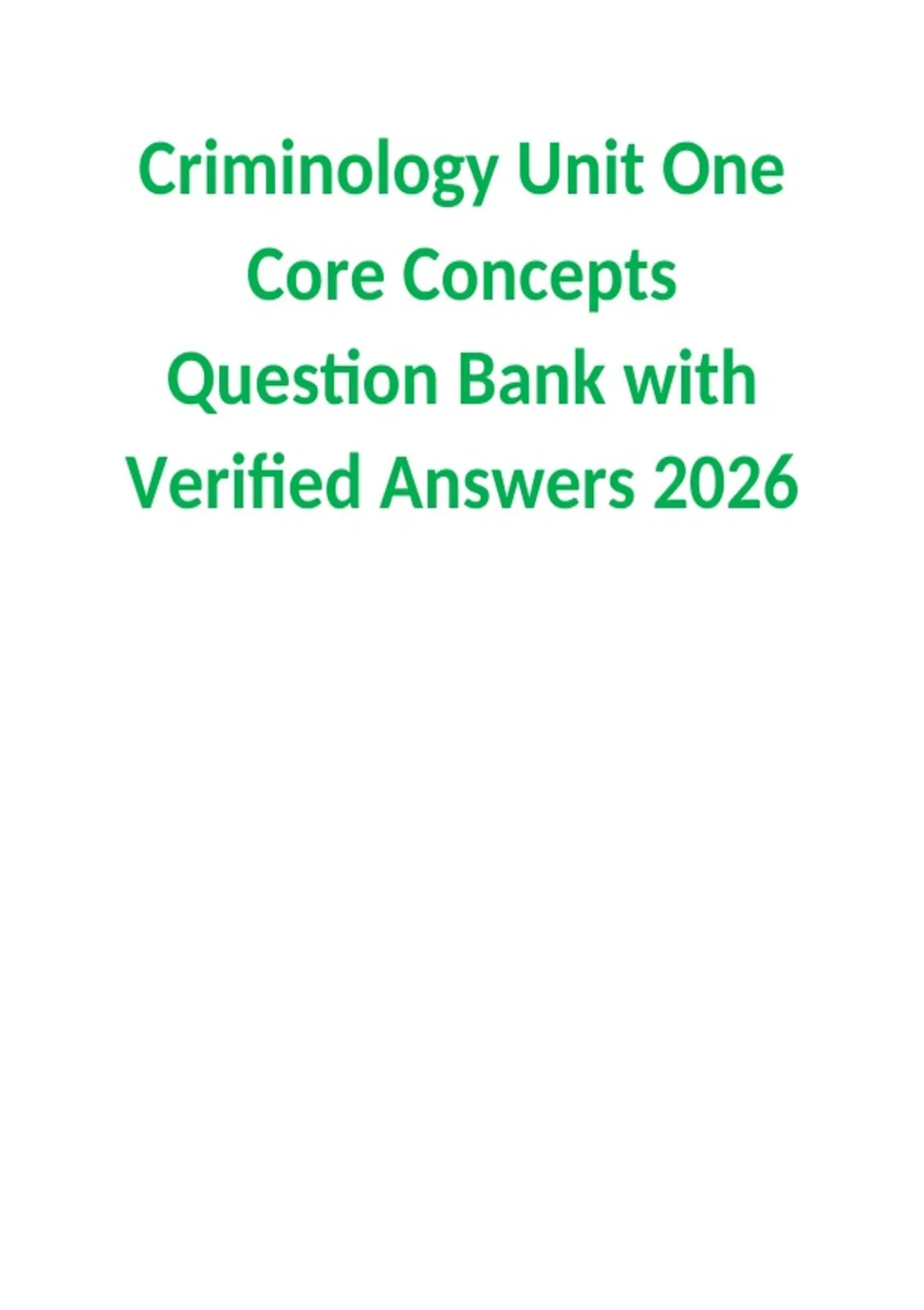 Criminology Unit One Core Concepts Question Bank with Verified Answers 2026.docx