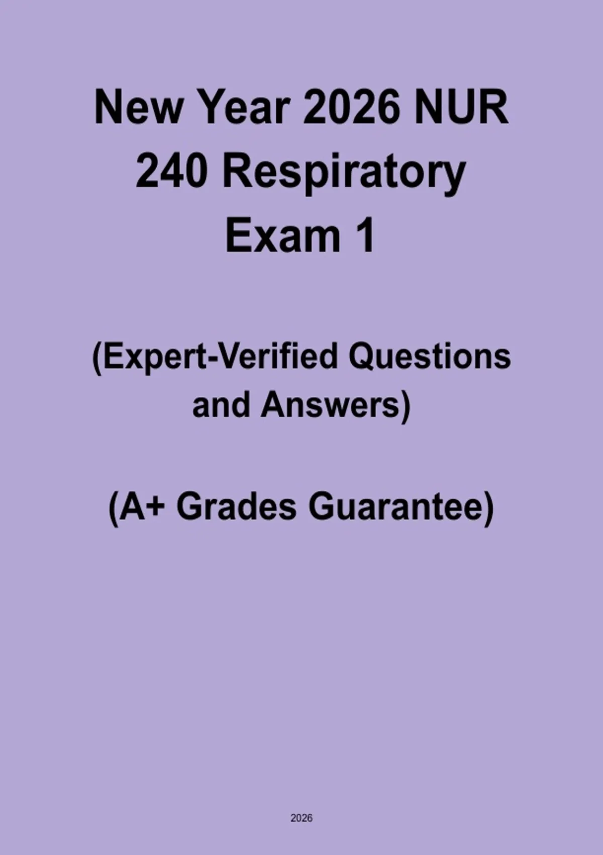 This New Year 2026 NUR 240 Respiratory Exam 1 PDF is a focused study and review resource for nursing students preparing for their first respiratory exam. Covering pulmonary assessment, ventilation, oxygenation, airway management, and critical respiratory interventions, it provides high-yield content, practice questions, and exam-focused strategies to help students master respiratory nursing concepts and excel on the 2026 NUR 240 Respiratory Exam 1.
