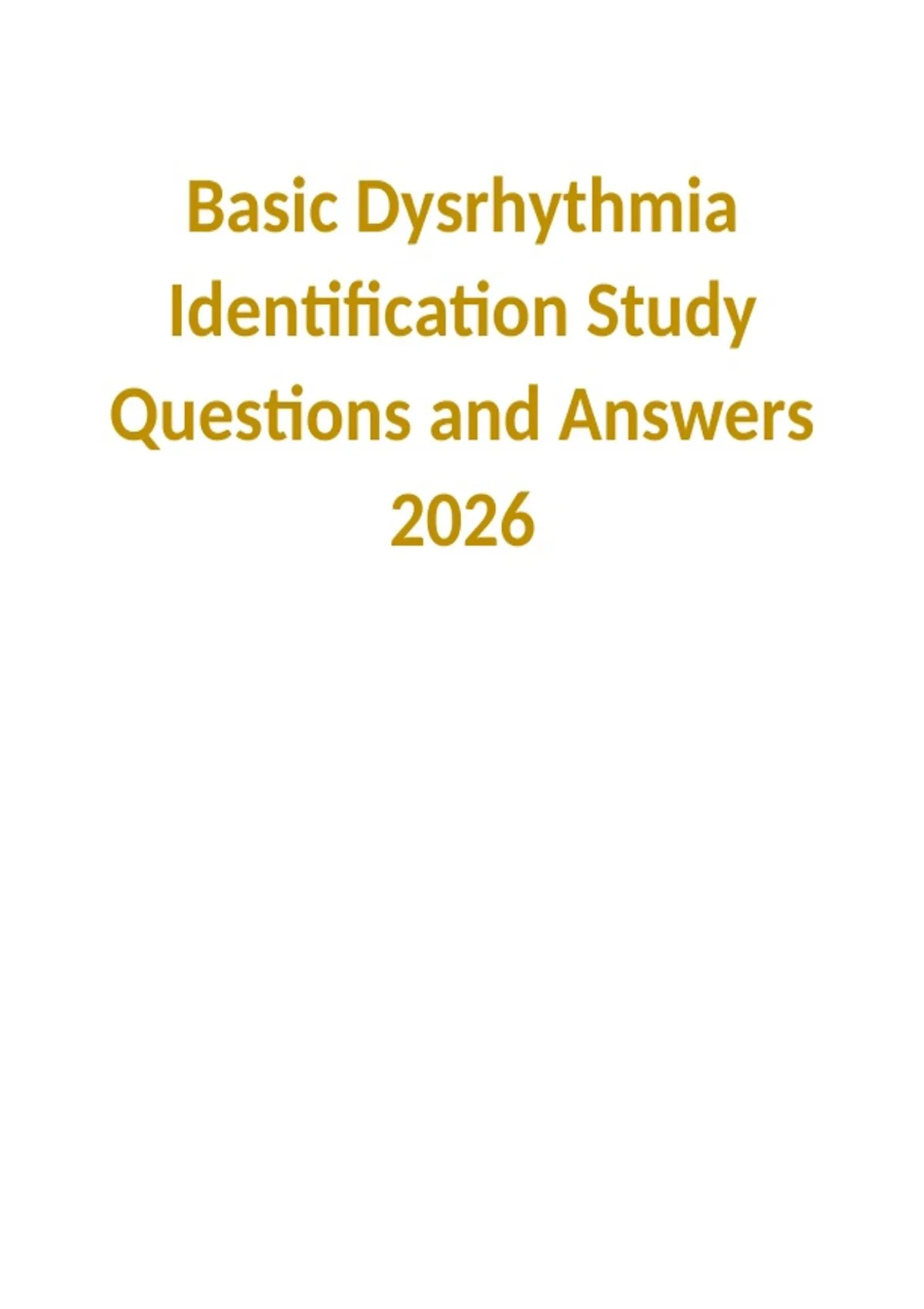 , Basic Dysrhythmia Identification Study Questions and Answers 2026
