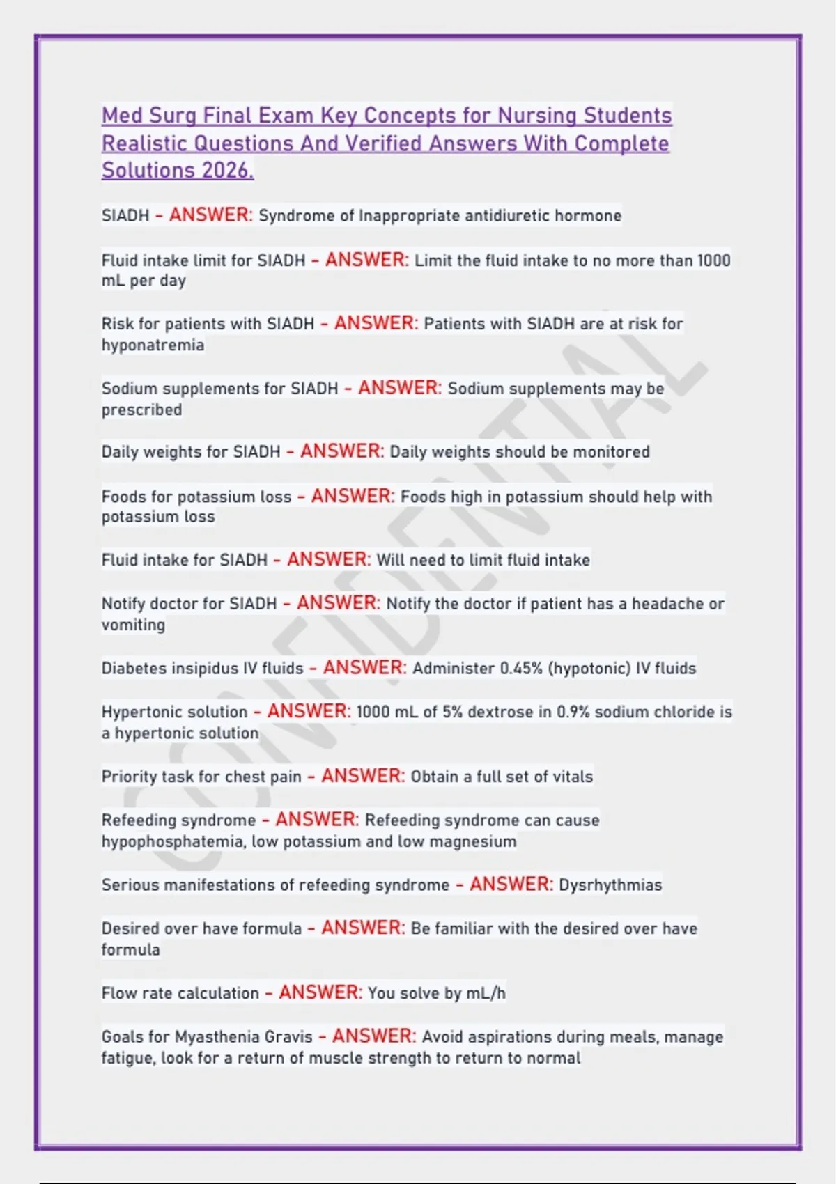 SIADH - ANSWER: Syndrome of Inappropriate antidiuretic hormone