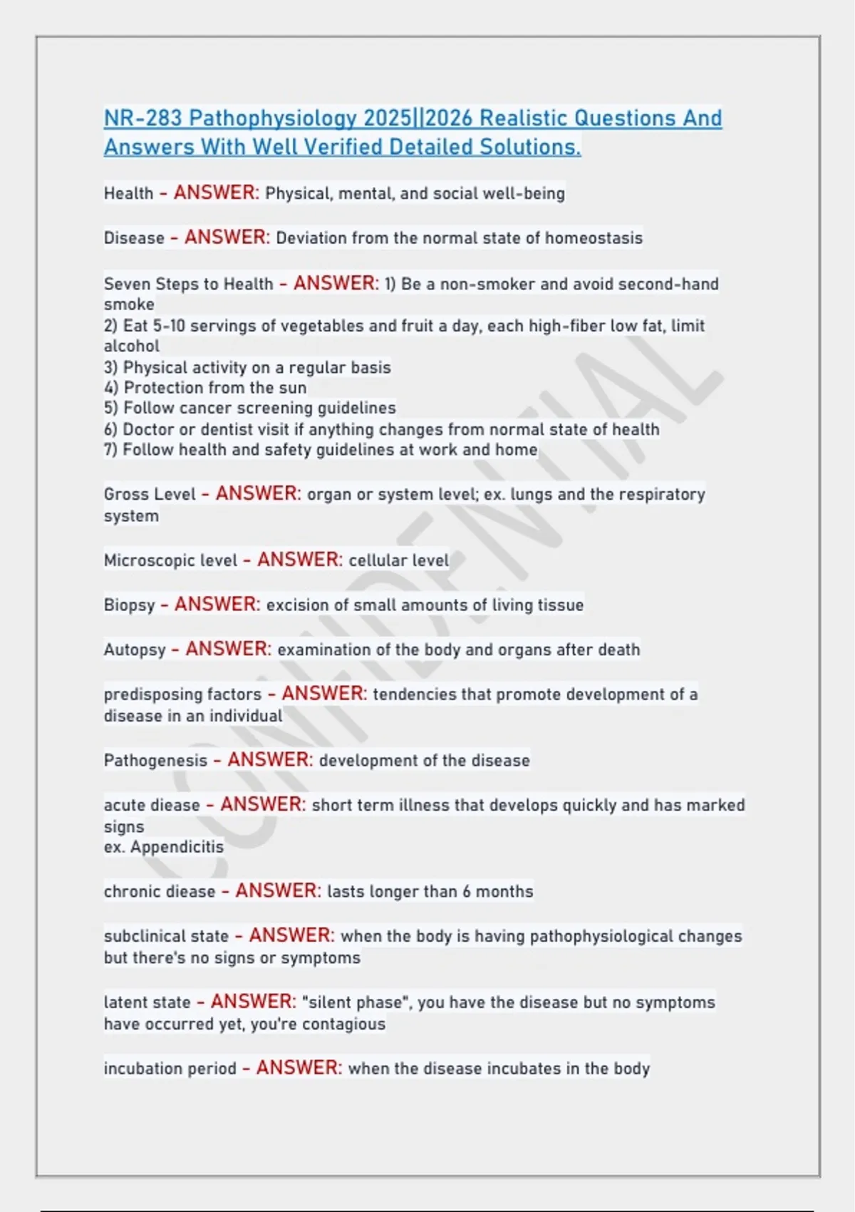 NR-283 Pathophysiology 2025||2026 Realistic Questions And