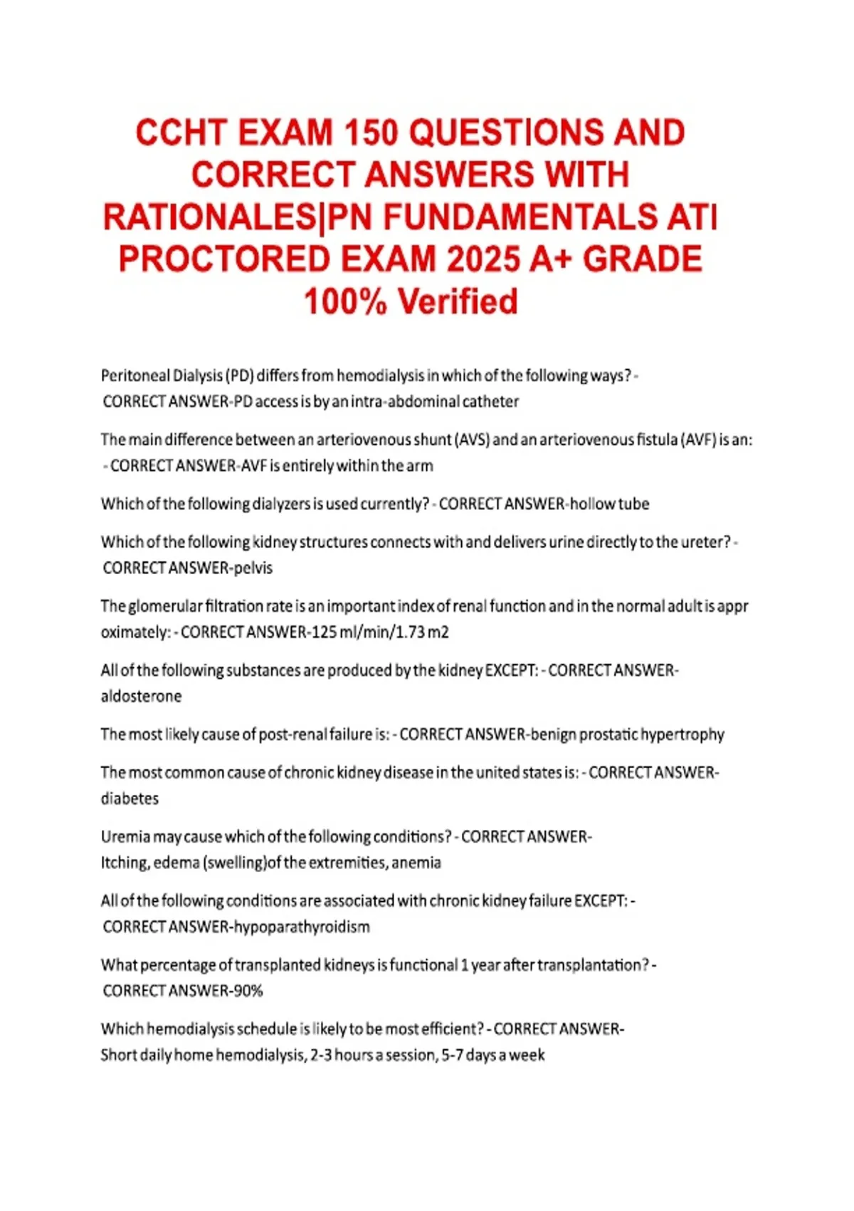 CCHT EXAM 150 QUESTIONS AND CORRECT ANSWERS WITH RATIONALES.