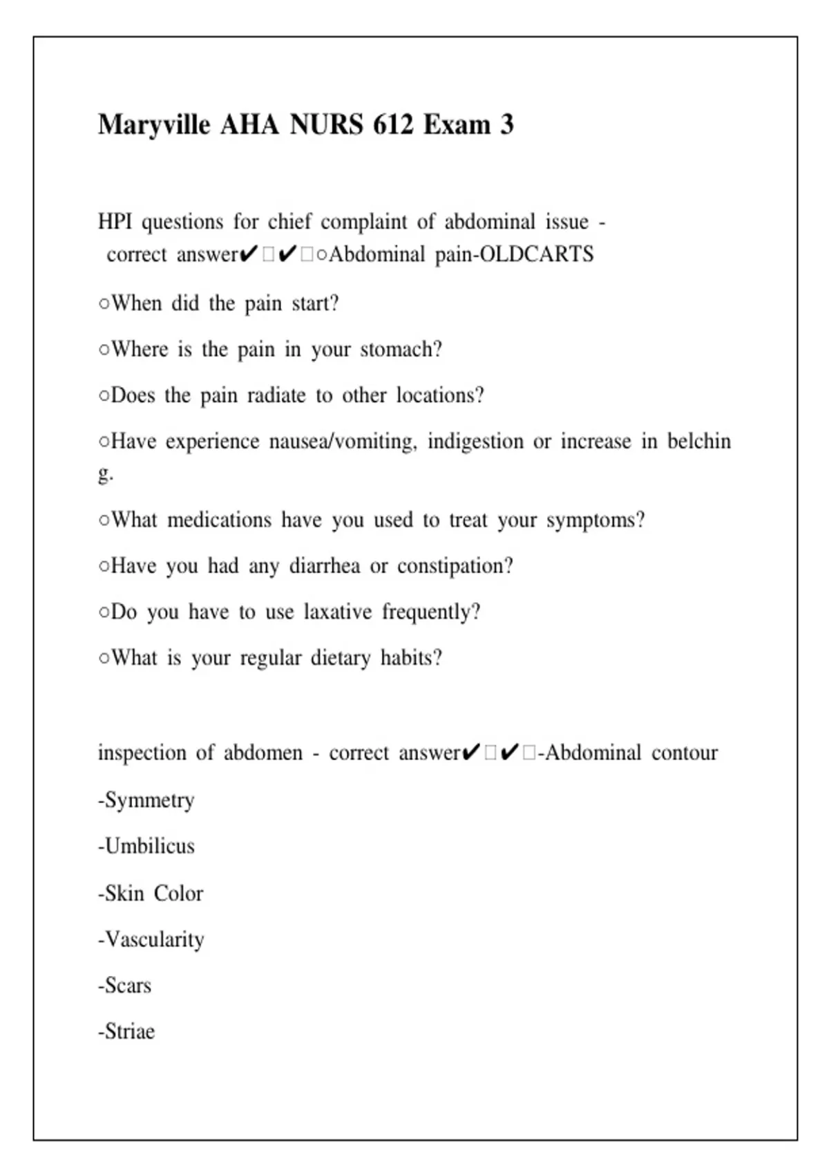 v7correctv7answer✔ ✔ ○Abdominalv7pain-OLDCARTS