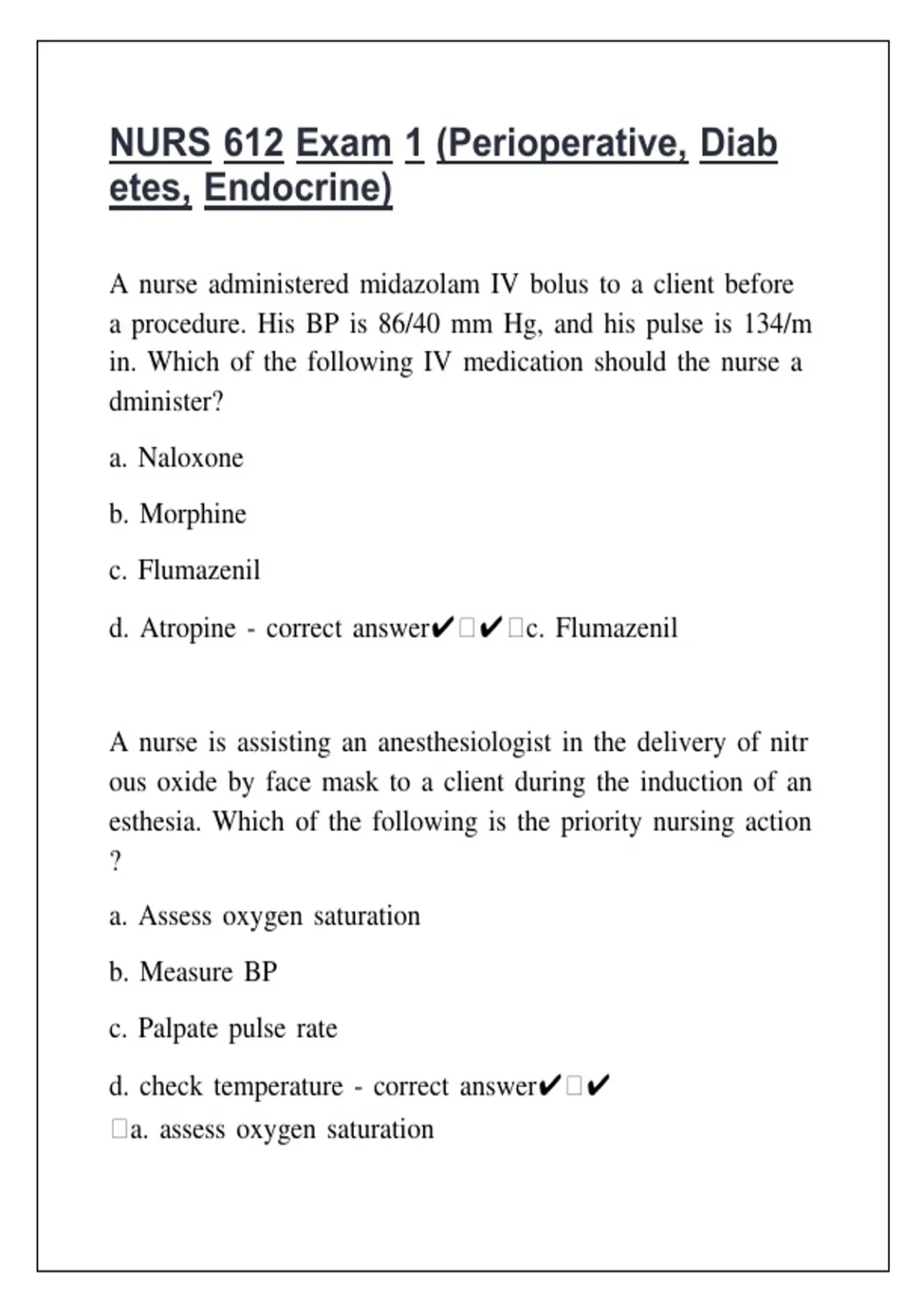 NURS 612 Exam 1 (Perioperative, Diabetes, Endocrine) | Questions and Correct Answers | Latest Update