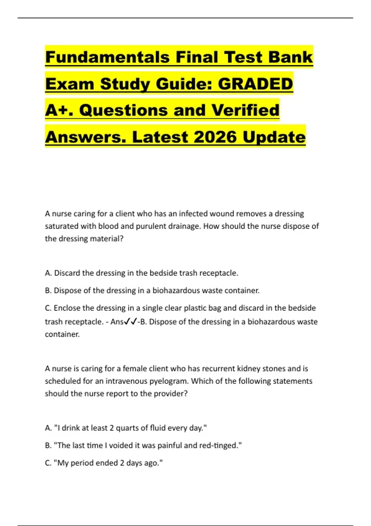 trash receptacle. - Ans✔✔-B. Dispose of the dressing in a biohazardous waste