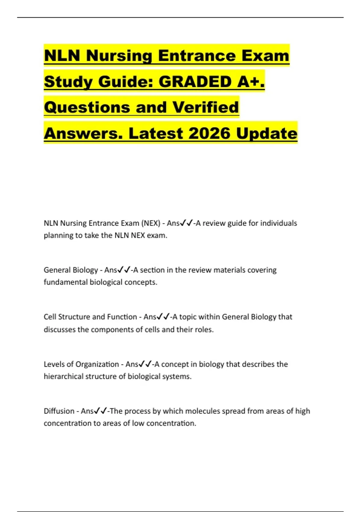 NLN Nursing Entrance Exam Study Guide: GRADED A+. Questions and Verified Answers. Latest 2026 Update