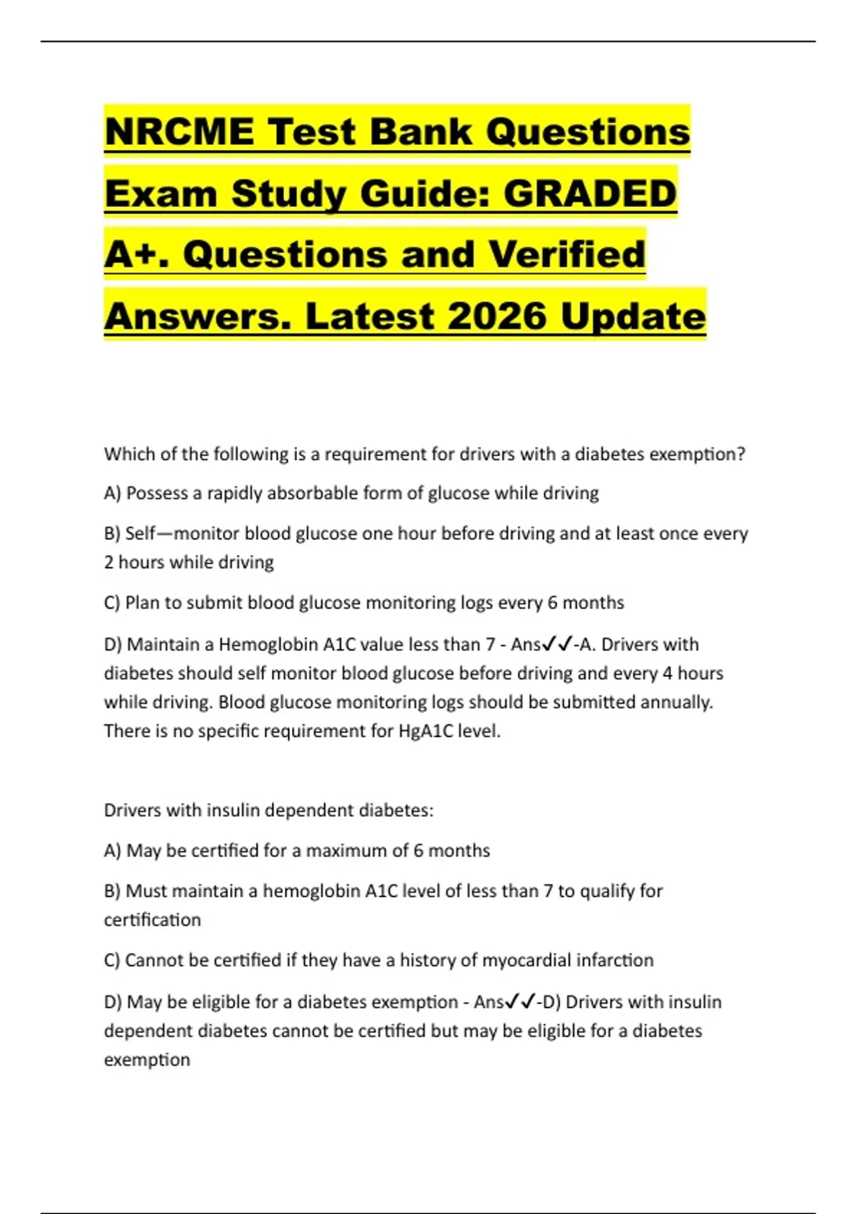 NRCME Test Bank Questions Exam Study Guide: GRADED A+. Questions and Verified Answers. Latest 2026 Update NRCME Test Bank Questions Exam Study Guide: GRADED A+. Questions and Verified Answers. Latest 2026 Update NRCME Test Bank Questions Exam Study Guide: GRADED A+. Questions and Verified Answers. Latest 2026 Update
