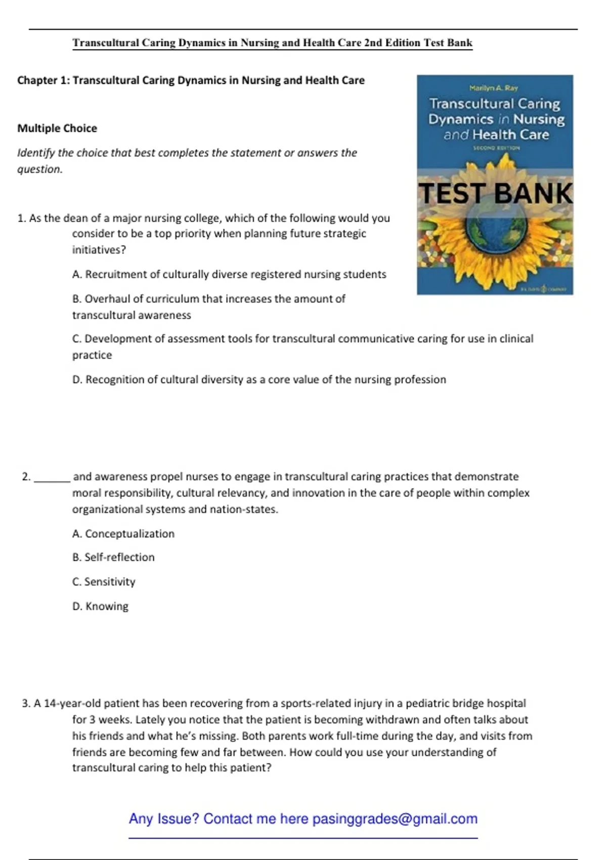 Transcultural Caring Dynamics in Nursing and Health Care 2nd Edition Test Bank