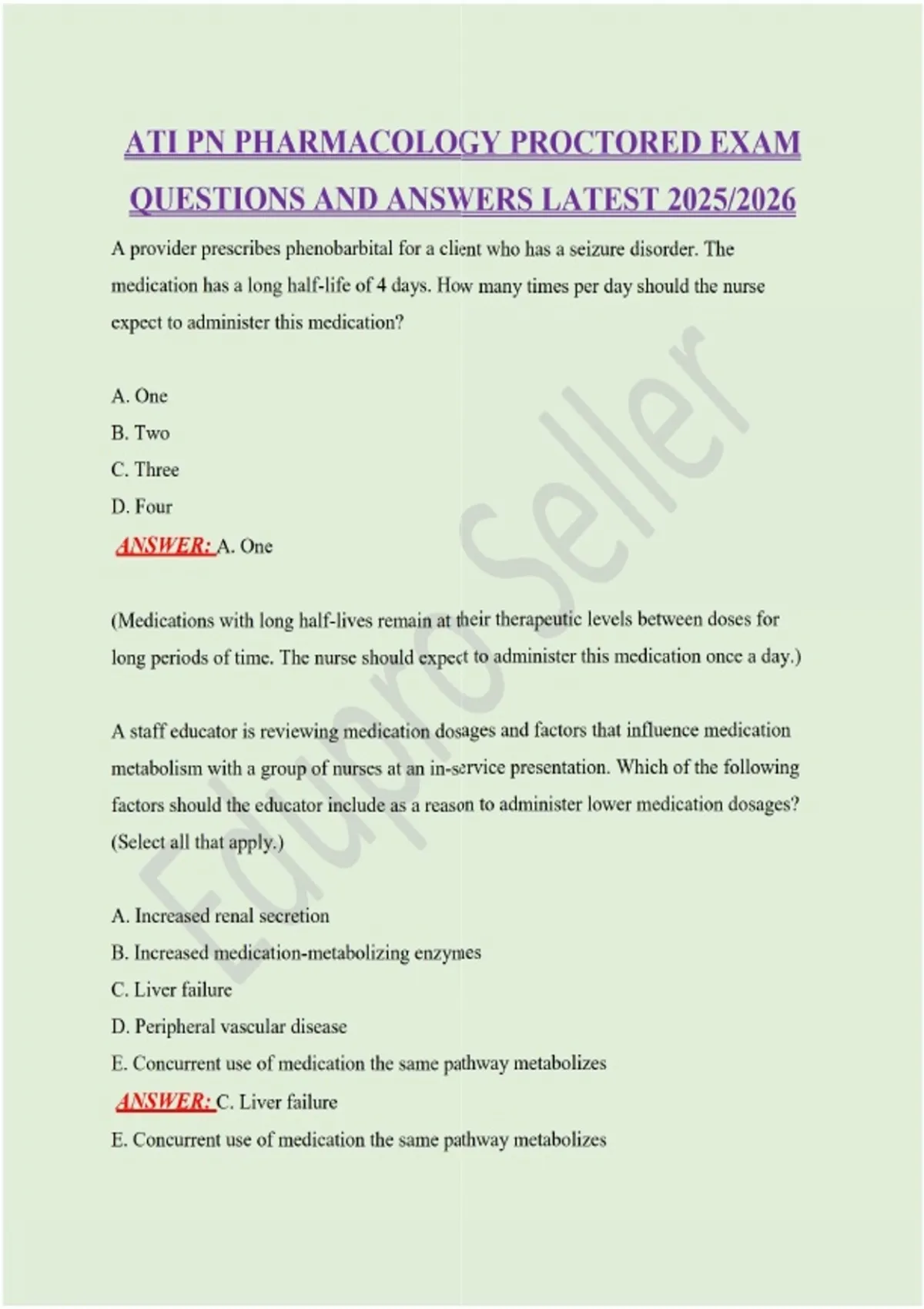 ATI PN PHARMACOLOGY PROCTORED EXAM QUESTIONS AND ANSWERS LATEST 2025/2026