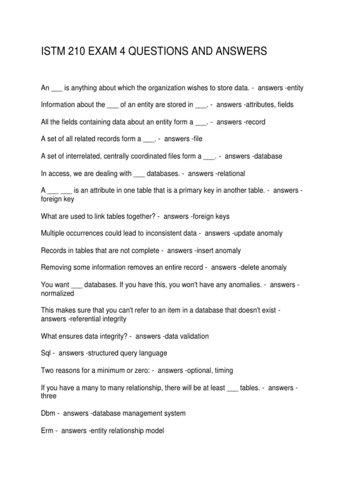 ISTM 210 EXAM 4 QUESTIONS AND ANSWERS