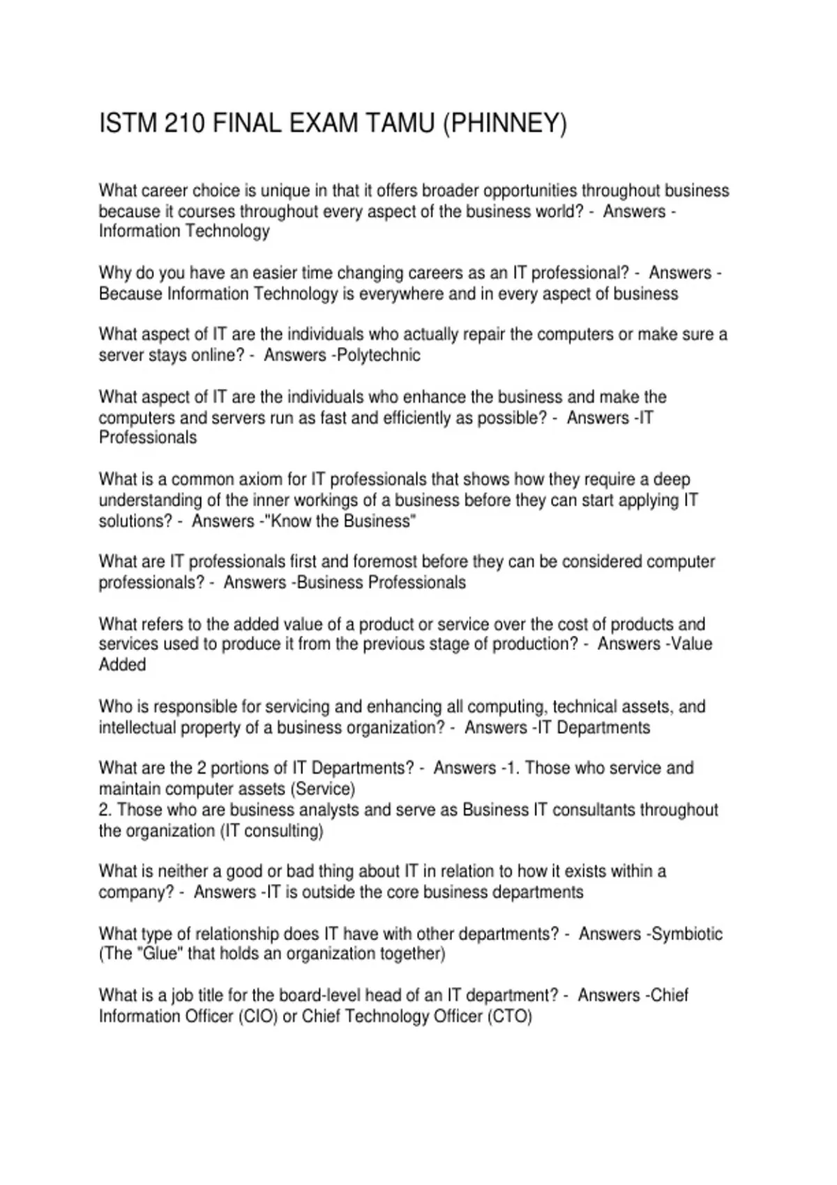 ISTM 210 FINAL EXAM TAMU (PHINNEY)