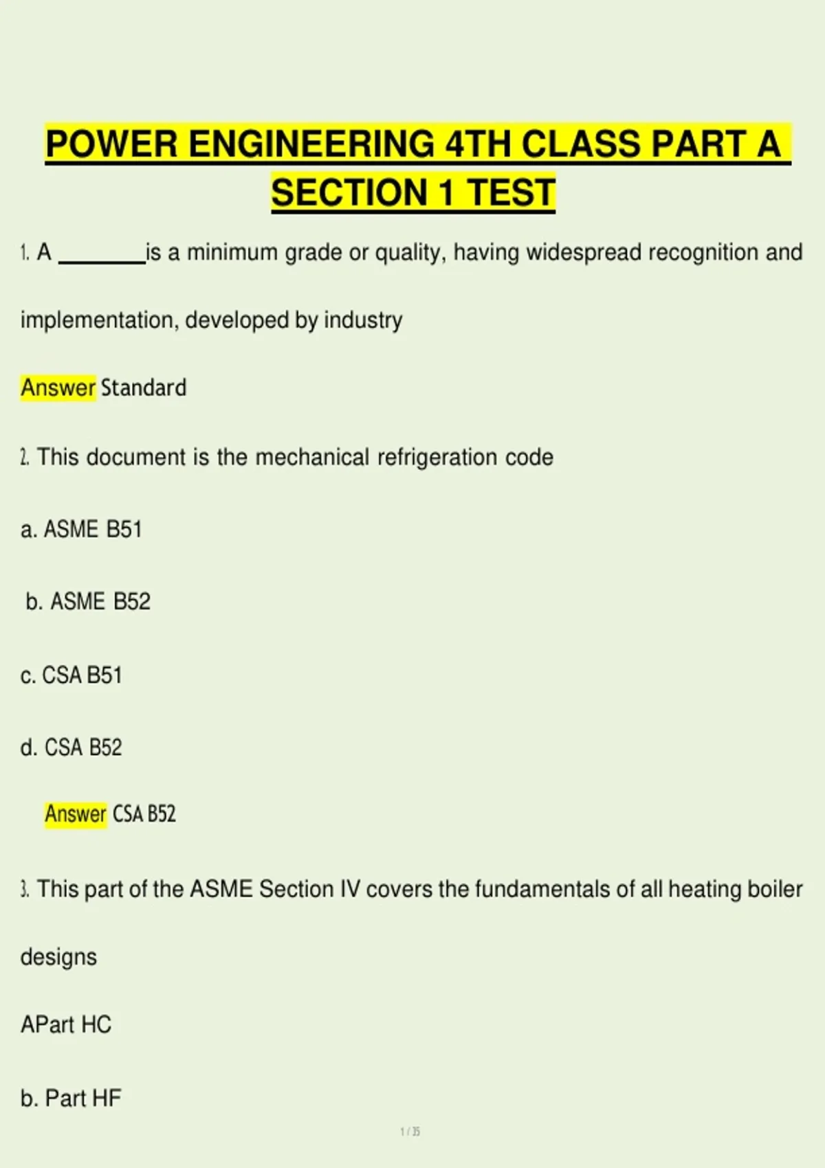 Power Engineering 4th Class Part A – Section 1 Test | Comprehensive Study Guide with Exam-Style Questions VERIFIED 2025/2026.