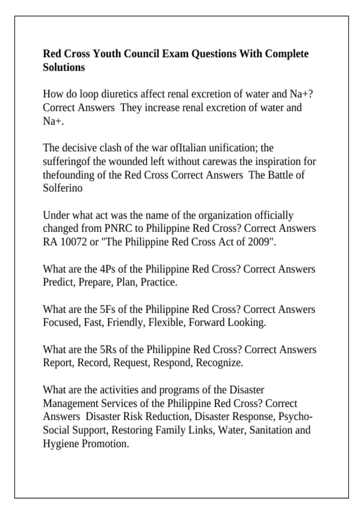 the Philippine Red Cross? Correct Answers First Aid and Basic