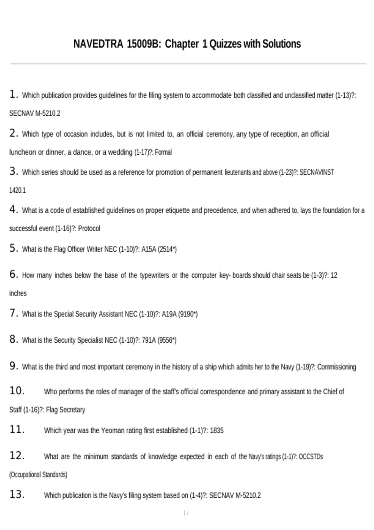 NAVEDTRA 15009B: Chapter 1 Quizzes with Solutions