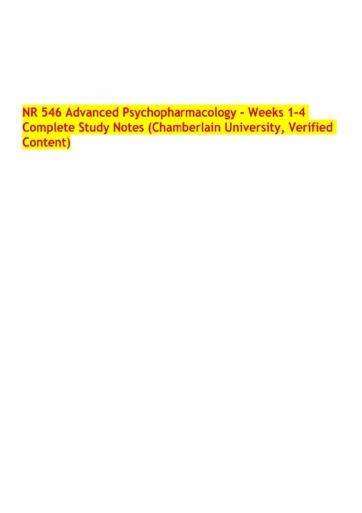 NR 546 Advanced Psychopharmacology – Weeks 1–4 Complete Study Notes (Chamberlain University, Verified Content).pdf NR 546 Advanced Psychopharmacology – Weeks 1–4 Complete Study Notes (Chamberlain University, Verified Content).pdf NR 546 Advanced Psychopharmacology – Weeks 1–4 Complete Study Notes (Chamberlain University, Verified Content).pdf