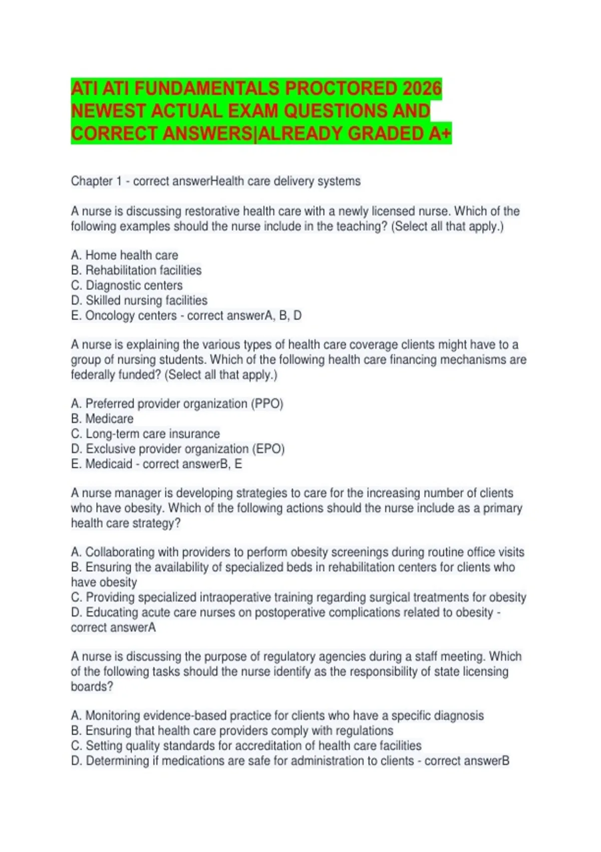 ATI FUNDAMENTALS PROCTORED 2026 NEWEST ACTUAL EXAM QUESTIONS AND CORRECT ANSWERS|ALREADY GRADED A+