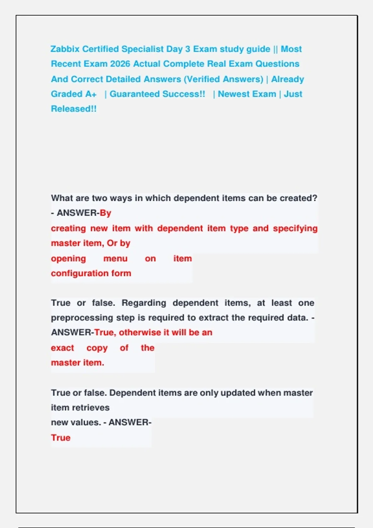 Zabbix Certified Specialist Day 3 Exam study guide || Most Recent Exam 2026 Actual Complete Real Exam Questions And Correct Detailed Answers (Verified Answers) | Already Graded A+ | Guaranteed Success!! | Newest Exam | Just Released!! Zabbix Certified Specialist Day 3 Exam study guide || Most Recent Exam 2026 Actual Complete Real Exam Questions And Correct Detailed Answers (Verified Answers) | Already Graded A+ | Guaranteed Success!! | Newest Exam | Just Released!! Zabbix Certified Specialist Day 3 Exam study guide || Most Recent Exam 2026 Actual Complete Real Exam Questions And Correct Detailed Answers (Verified Answers) | Already Graded A+ | Guaranteed Success!! | Newest Exam | Just Released!! Zabbix Certified Specialist Day 3 Exam study guide || Most Recent Exam 2026 Actual Complete Real Exam Questions And Correct Detailed Answers (Verified Answers) | Already Graded A+ | Guaranteed Success!! | Newest Exam | Just Released!! Zabbix Certified Specialist Day 3 Exam study guide || Most Recent Exam 2026 Actual Complete Real Exam Questions And Correct Detailed Answers (Verified Answers) | Already Graded A+ | Guaranteed Success!! | Newest Exam | Just Released!! Zabbix Certified Specialist Day 3 Exam study guide || Most Recent Exam 2026 Actual Complete Real Exam Questions And Correct Detailed Answers (Verified Answers) | Already Graded A+ | Guaranteed Success!! | Newest Exam | Just Released!!