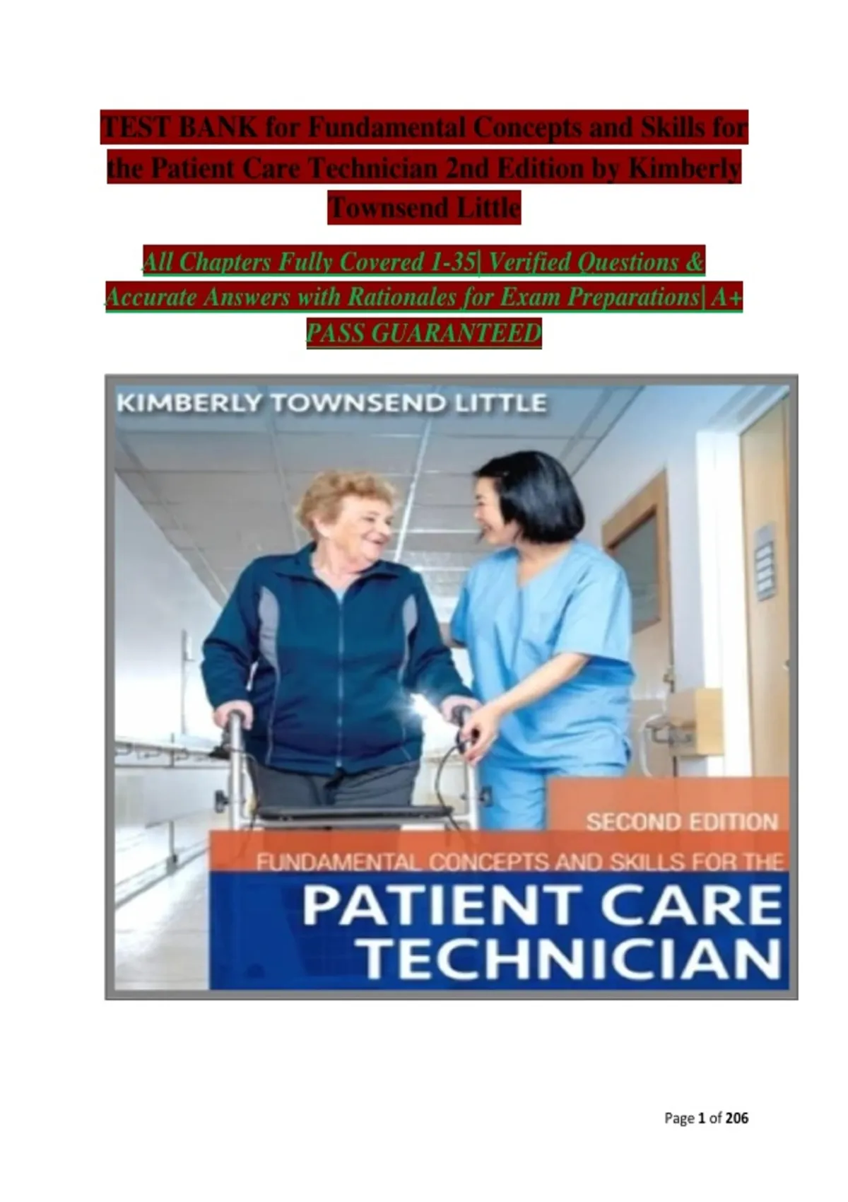 Test Bank for Fundamental Concepts and Skills for the Patient Care Technician 2nd Edition Townsend