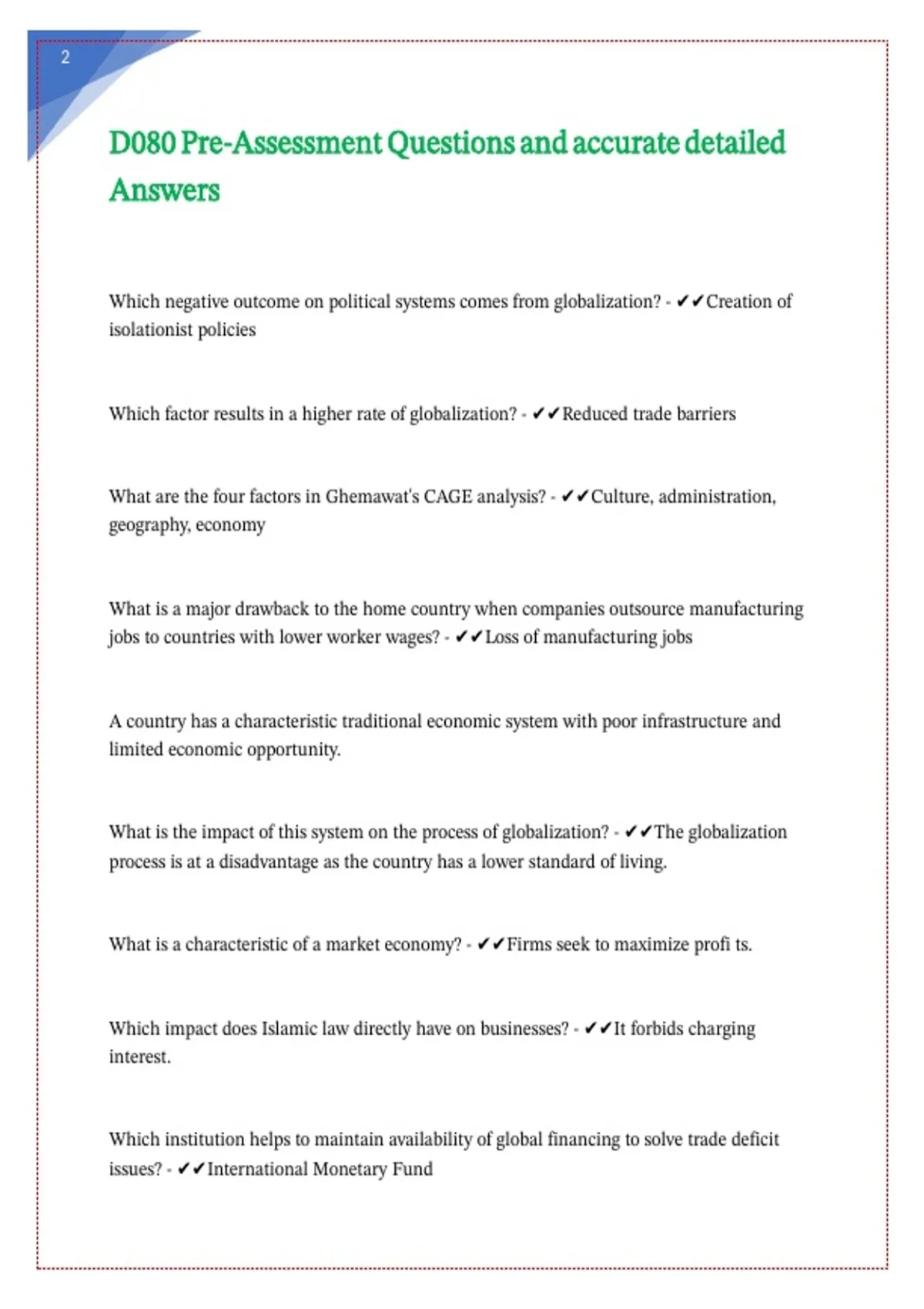 D080 Pre-Assessment Questions and accurate detailed