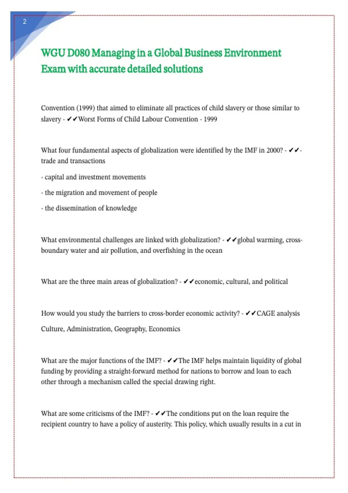 WGU D080 Managing in a Global Business Environment