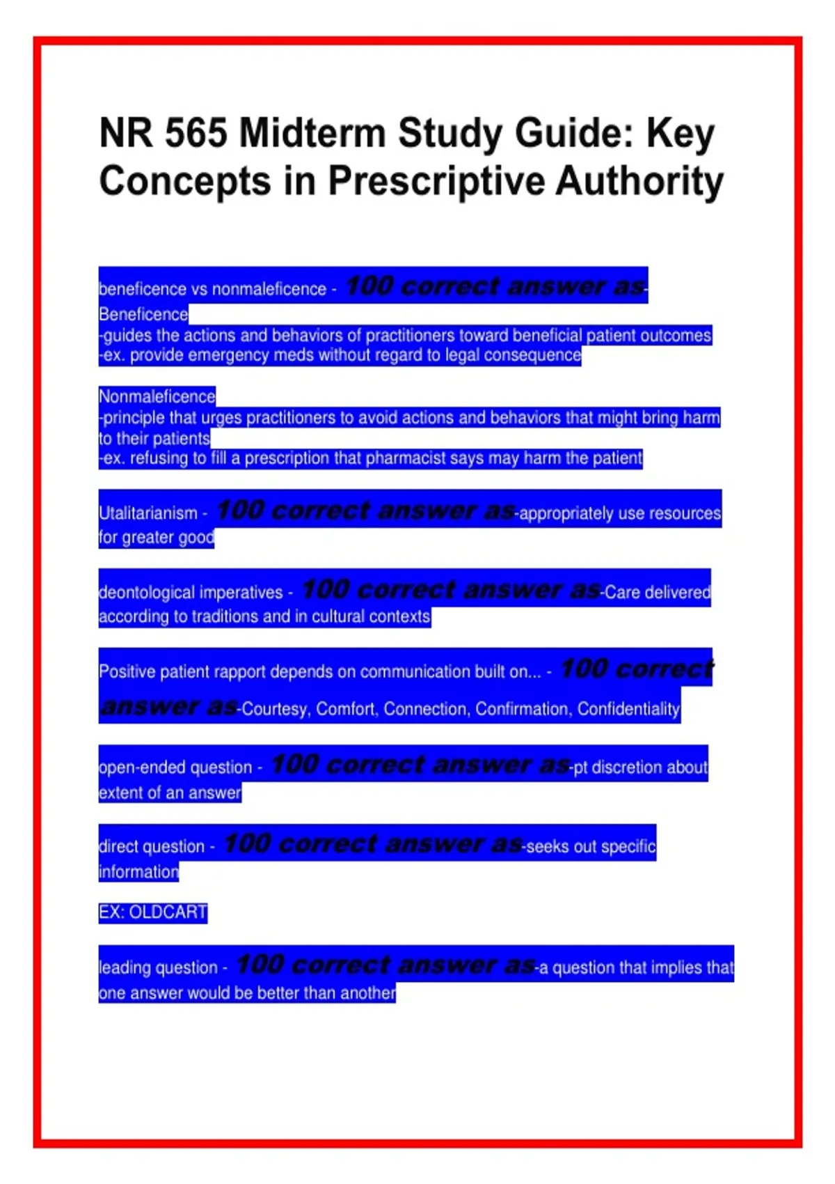 deontological imperatives - 100 correct answer as-Care delivered