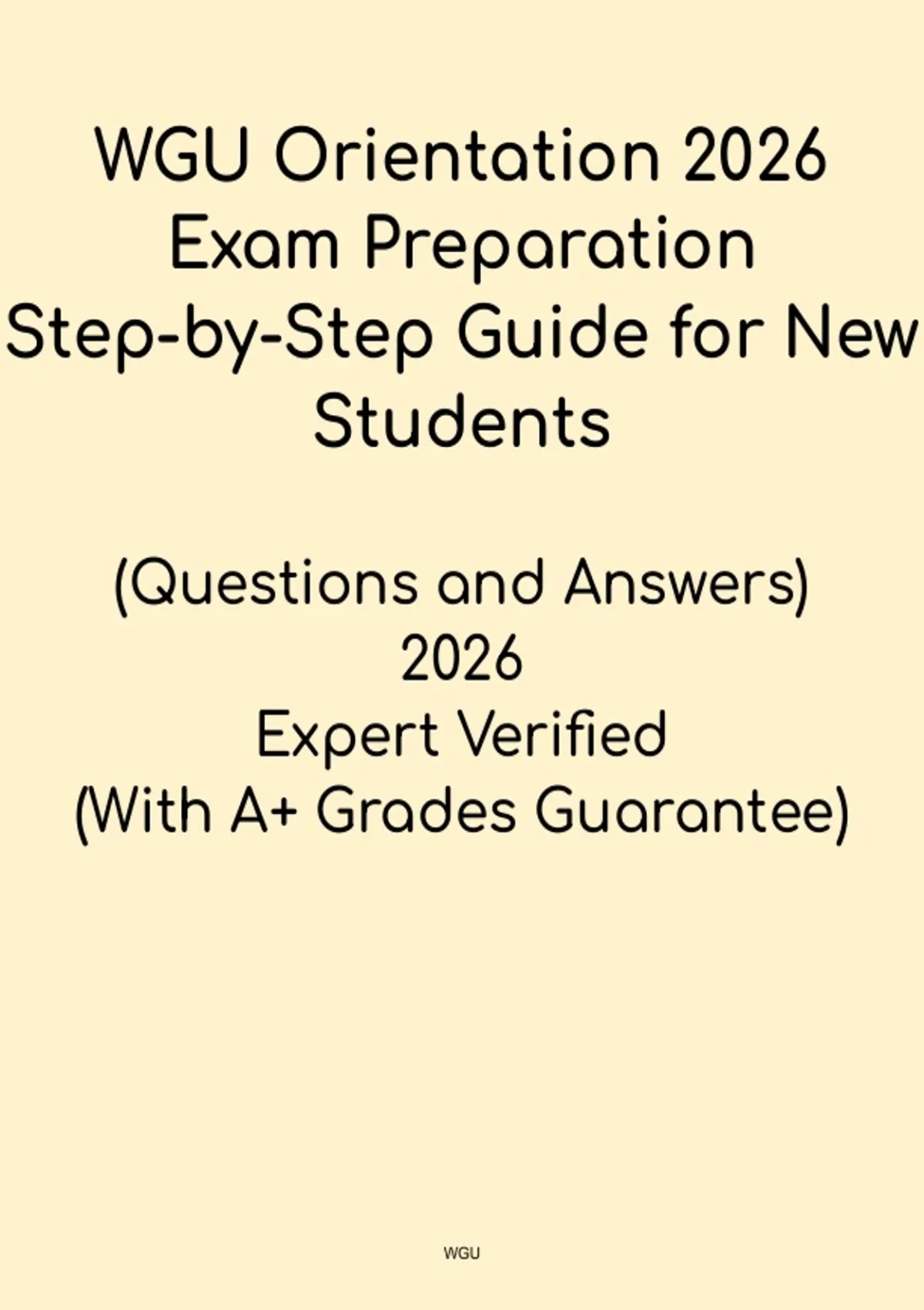 The WGU Orientation 2026 Exam Prep – Step-by-Step Guide for New Students is a complete resource designed to help new Western Governors University students successfully complete the orientation exam and get started on the right track. This guide provides a clear, step-by-step approach to understanding WGU’s online learning environment, expectations, and success strategies. It includes tips, exam-style questions, and a structured plan to help students pass orientation quickly and confidently. Perfect for new students who want to start their WGU journey smoothly, this guide helps you stay organized, focused, and prepared