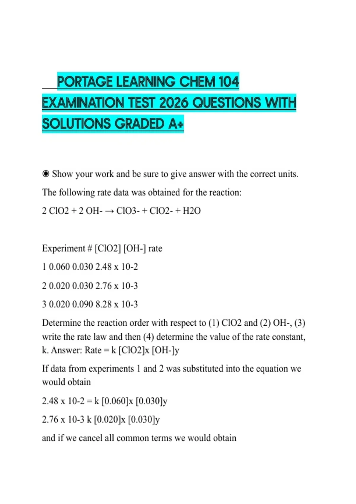 PORTAGE LEARNING CHEM 104 EXAMINATION TEST 2026 QUESTIONS WITH SOLUTIONS GRADED A+